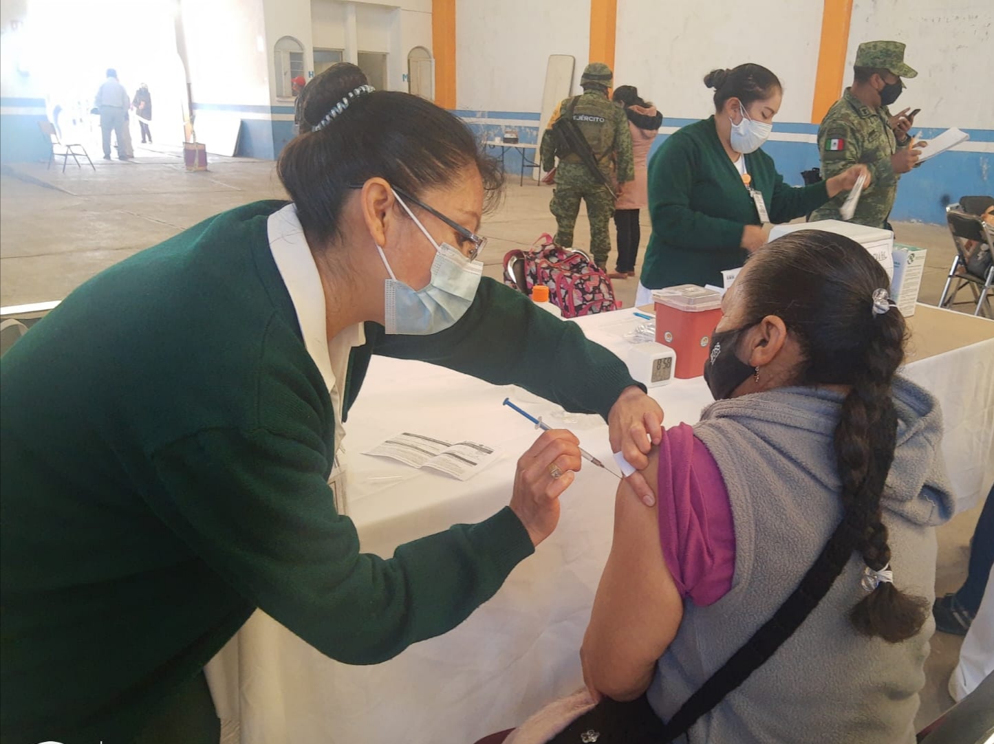Durante tres días se realizará la inmunización en un horario de 8:00 a 17:00 horas, bajo la Política Nacional de Vacunación contra el Virus SARS-CoV-2 para la Prevención de COVID-19 en México y protocolos de higiene uso correcto y obligatorio de cubrebocas, tapando nariz y boca, sanitización de manos con alcohol gel al 70 por ciento y sana distancia de al menos de 1.5 metros.