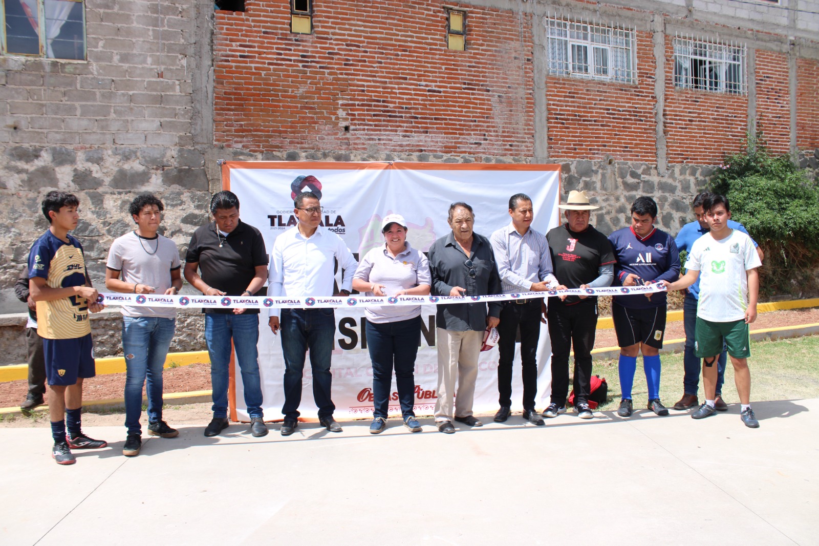 Tlaxcala, Tlax; 18 de junio de 2024 (PulsoRed) La alcaldesa capitalina, Maribel Pérez Arenas, acompañada por vecinos de Ixtulco y del presidente de comunidad, Humberto Montes Nava, realizó la inauguración de la obra de rehabilitación integral de la Unidad Deportiva «La Cienega”.