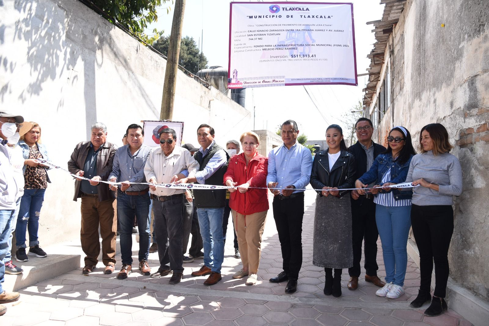 Tlaxcala, Tlax; 15 de febrero de 2023 (PulsoRed) El trabajo conjunto entre sociedad y gobierno ha sido fundamental para concretar acciones que benefician a la sociedad, aseguró al presidente municipal de Tlaxcala, Jorge Corichi, al inaugurar la primera etapa del pavimento de adoquín de la calle Ignacio Zaragoza, en la comunidad de San Esteban Tizatlán.