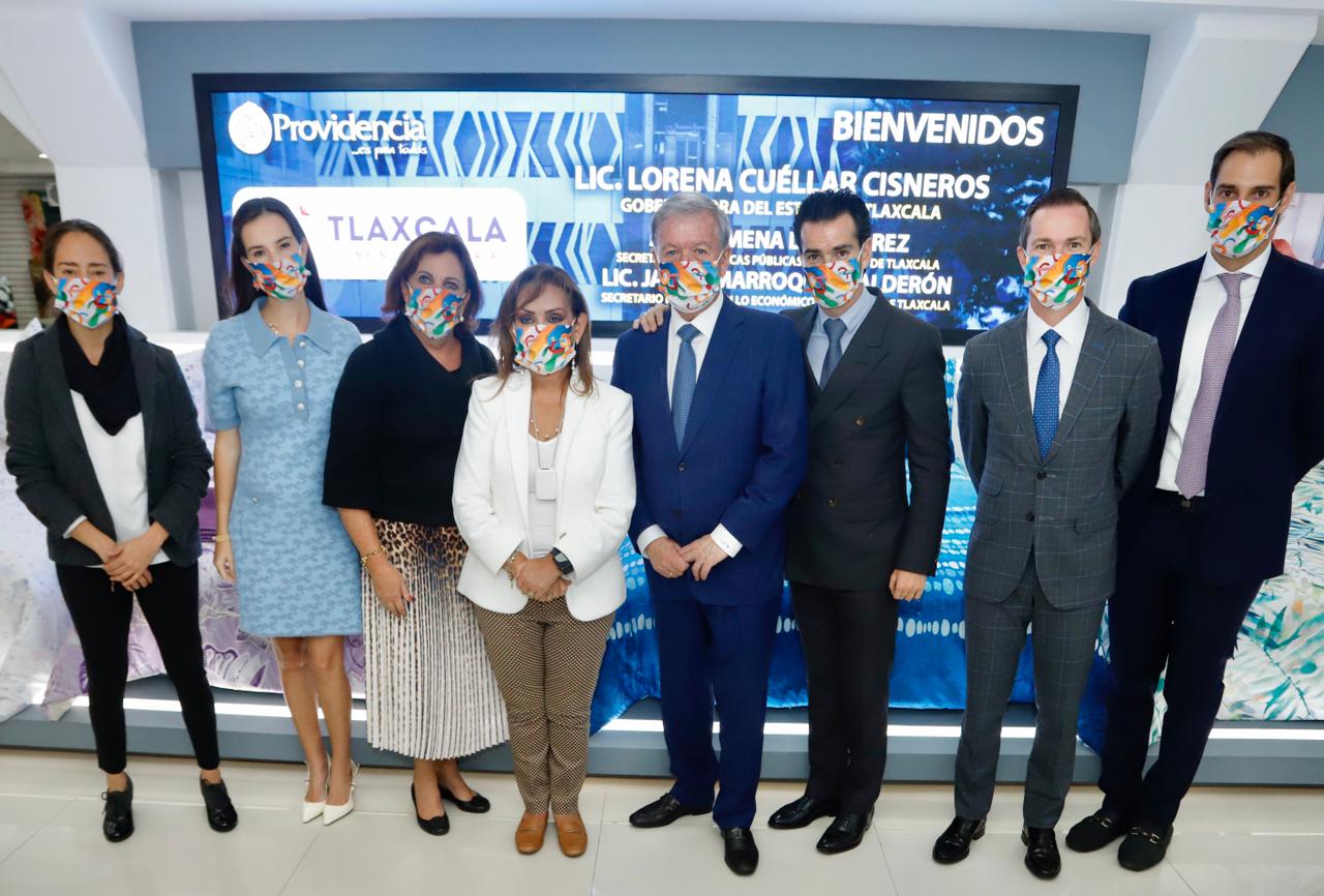 Cuéllar Cisneros recorrió las diferentes áreas que conforman la factoría, ubicada en el municipio de Contla de Juan Cuamatzi, acompañada por la coordinadora de Planeación e Inversión, Gimena Lara Pérez; los directivos de la empresa José Antonio Torre Mendoza, Rafael Torre Lamuño, José Antonio Torre Lamuño, Antonio Haces Gerala; así como la presidenta de la Fundación Providencia Contigo, María del Carmen Lamuño de Torres.