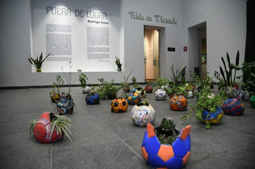 «Es un conjunto de cien balones (ponchados), convertidos en macetas… las tortillas están estampadas con un tinte orgánico en forma de balón. Es un honor estar aquí y agradecer al estado de Tlaxcala, a la gobernadora y a todos los que hicieron posible está exposición, que ruede la pelota y que haya más cultura; cultura en el sentido amplio, como deporte y como un forma de compartir lazos humanos», acotó.