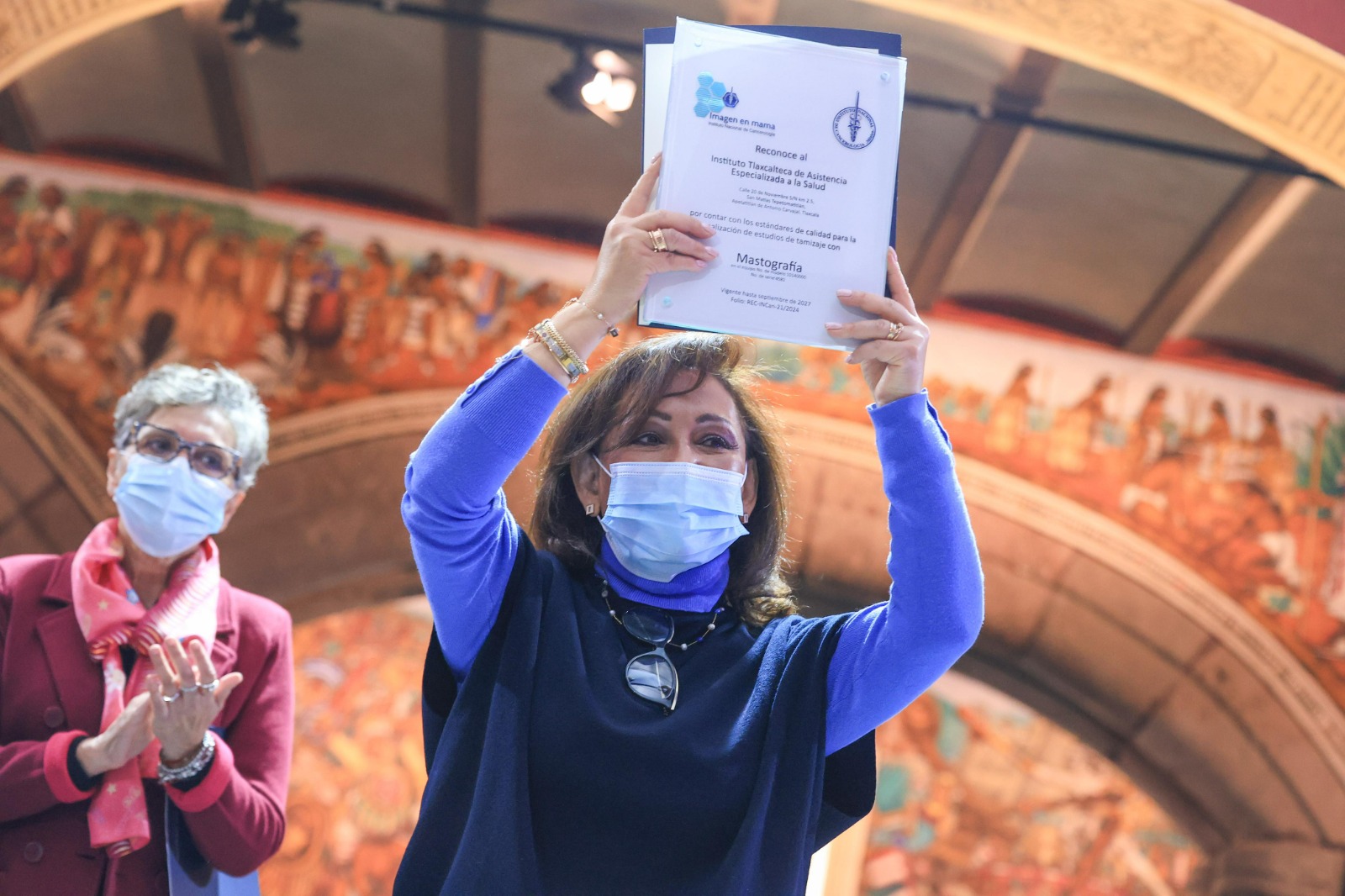 Tlaxcala, Tlax; 10 de enero de 2025 (PulsoRed) Al recibir el reconocimiento del Instituto Nacional de Cancerología (INCan) a la calidad del servicio de mastografía del Instituto Tlaxcalteca de Asistencia Especializada a la Salud (Itaes), la gobernadora Lorena Cuéllar Cisneros reconoció al personal de esta institución, que participó en una evaluación exhaustiva que analiza documentos, equipos y mantenimiento, entre otros aspectos.