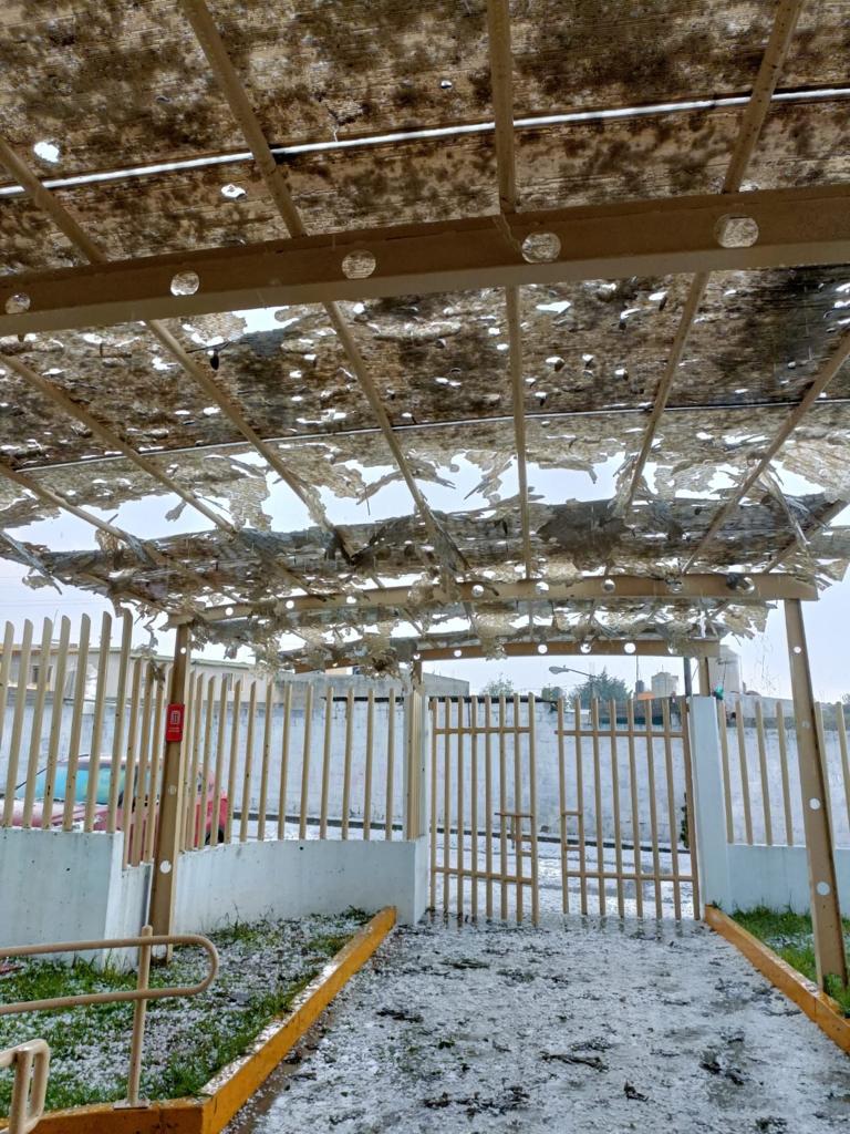 Así como en Centros de Salud donde los granizos perforaron domos y techumbres.