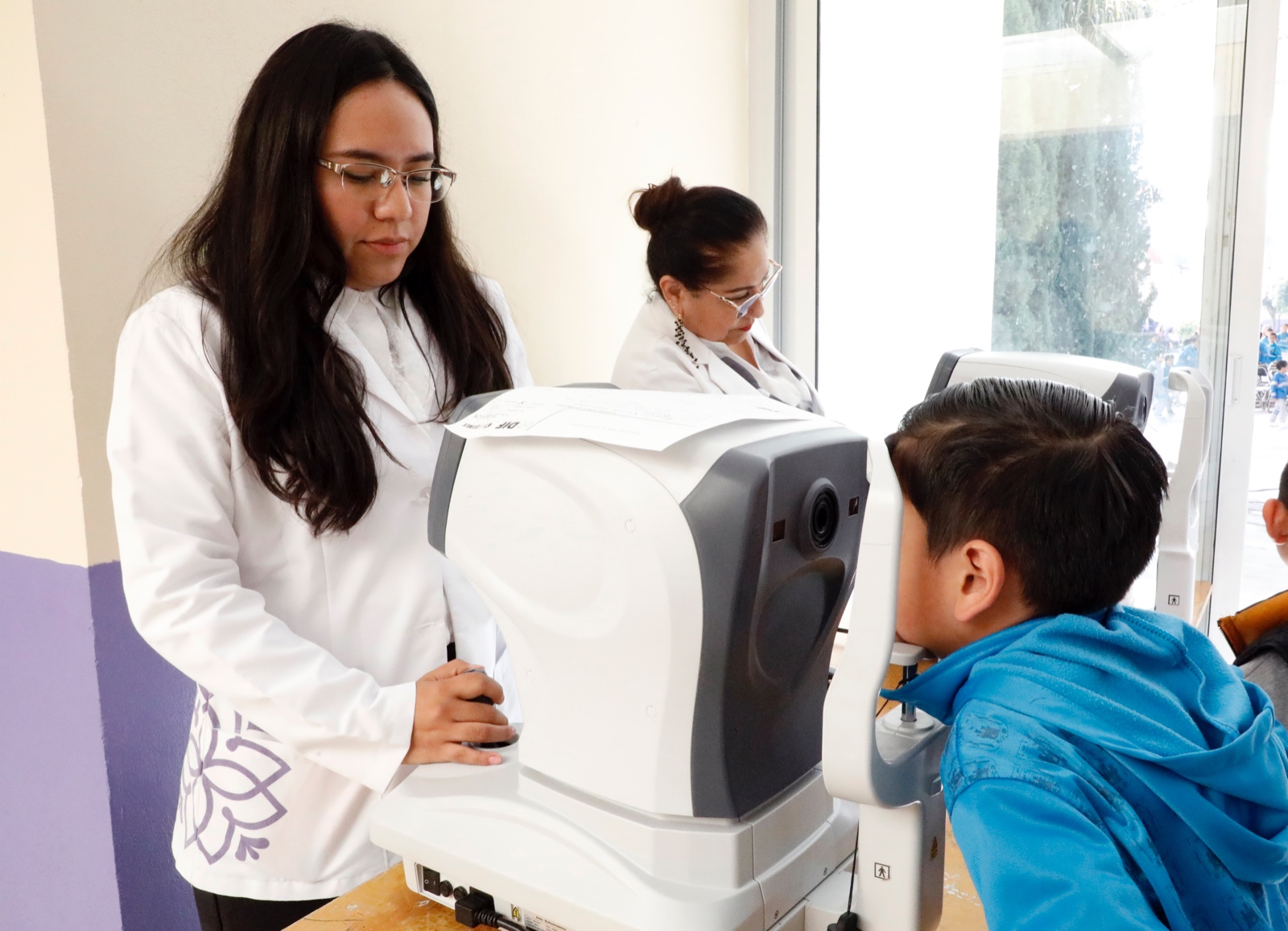 Después, en la escuela primaria Vicente Guerrero del municipio de Panotla, se realizó la valoración oftálmica y entrega de lentes graduados a niñas y niños beneficiados con el programa “Atención Visual: Contigo para Ver, Aprender y Avanzar”.