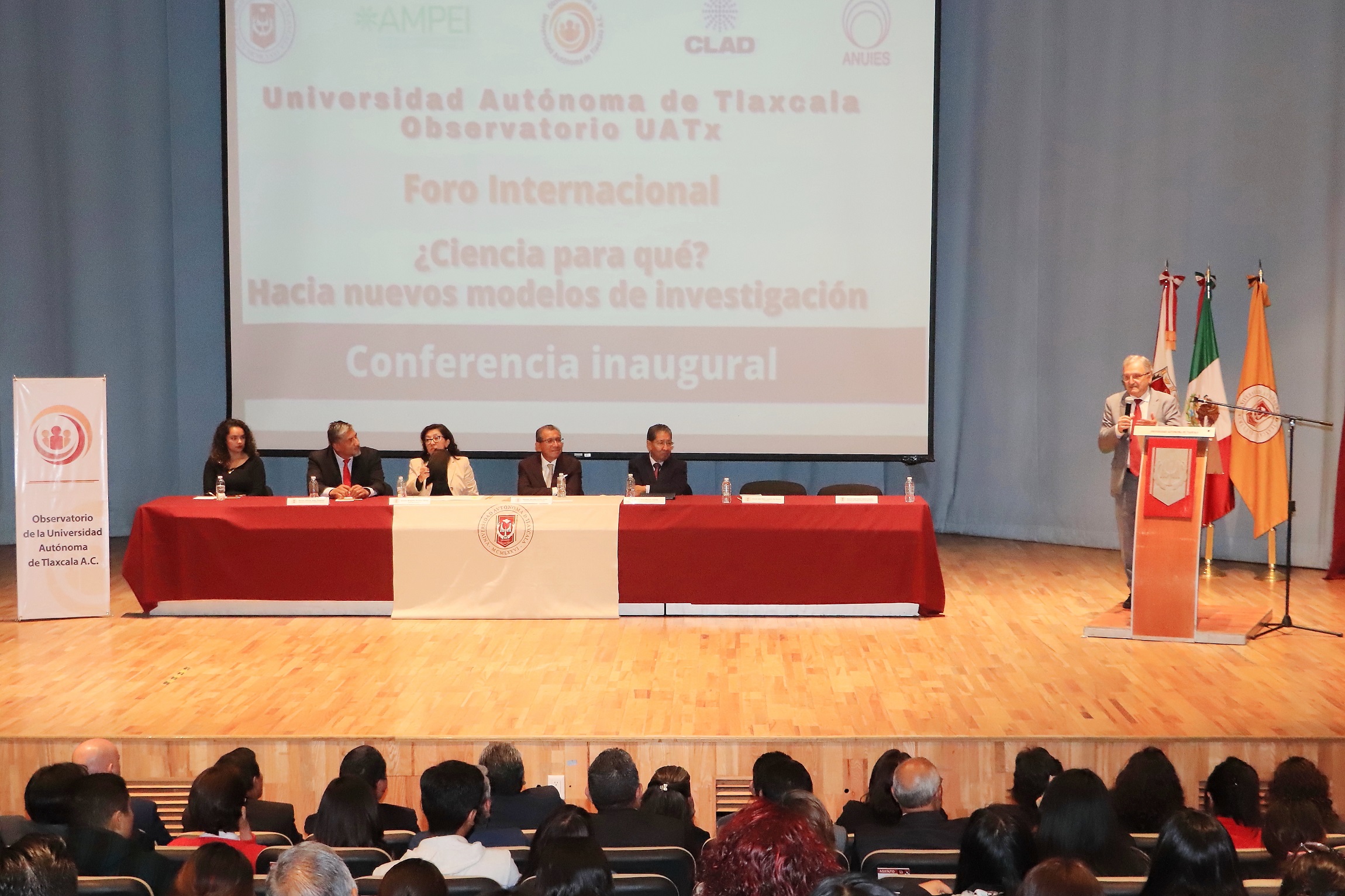 Tlaxcala, Tlax; 17 de agosto de 2023 (PulsoRed) El Doctor Serafín Ortiz Ortiz, Rector de la Universidad Autónoma de Tlaxcala (UATx), inauguró el Foro Internacional ¿Ciencia para qué? Hacia nuevos modelos de investigación, actividad organizada por el Observatorio Universitario (OU), que contará con la participación de destacados investigadores nacionales e internacionales, el cual se realiza de manera conjunta con la Asociación Nacional de Universidades e Instituciones de Educación Superior (ANUIES), el Centro Latinoamericano de Administración para el Desarrollo (CLAD) y la Asociación Mexicana para la Educación Internacional, A.C. (AMPEI).