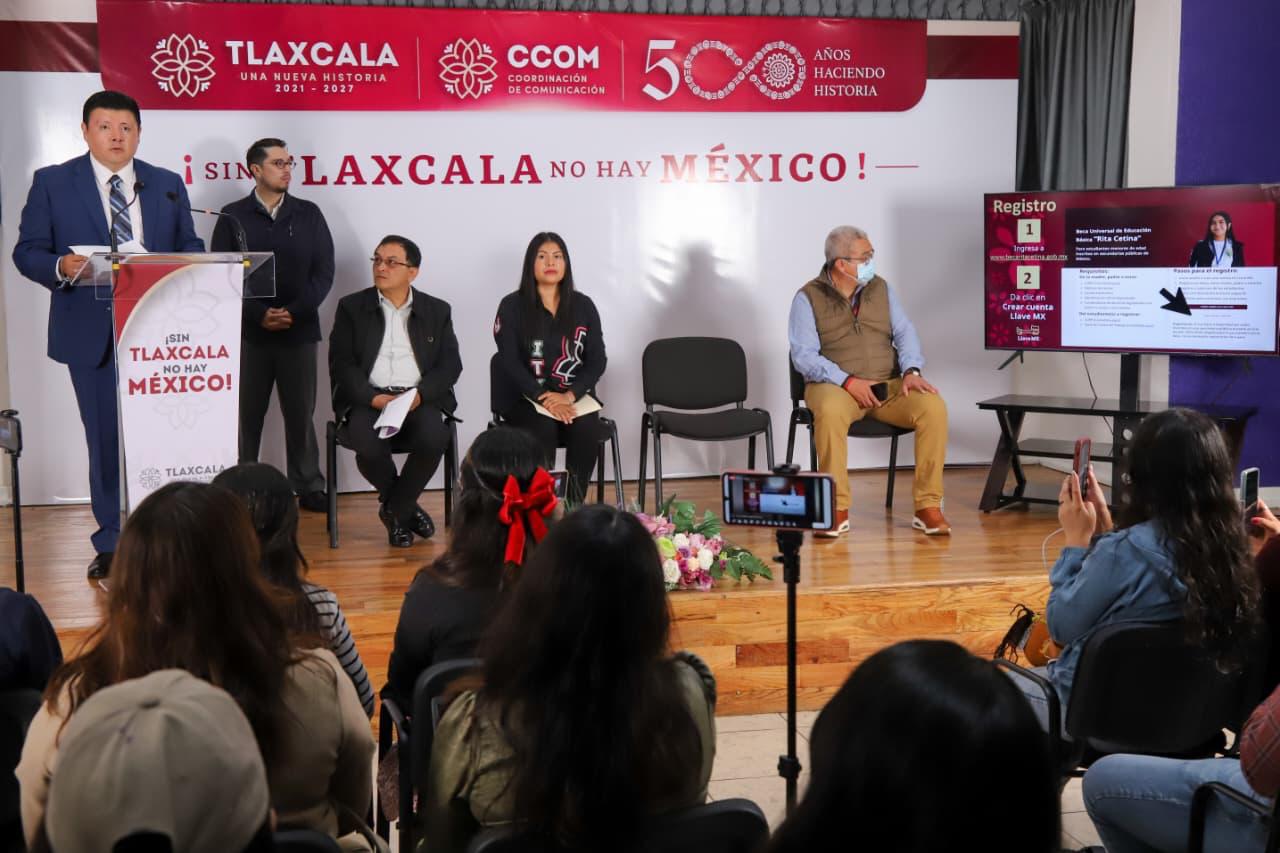 *El coordinador de Becas «Benito Juárez» en Tlaxcala, Moctezuma Bautista, llamó a madres, padres y jóvenes a sumarse a los programas del gobierno federal que buscan garantizar el acceso equitativo a la educación y apoyar que más estudiantes concluyan sus estudios _