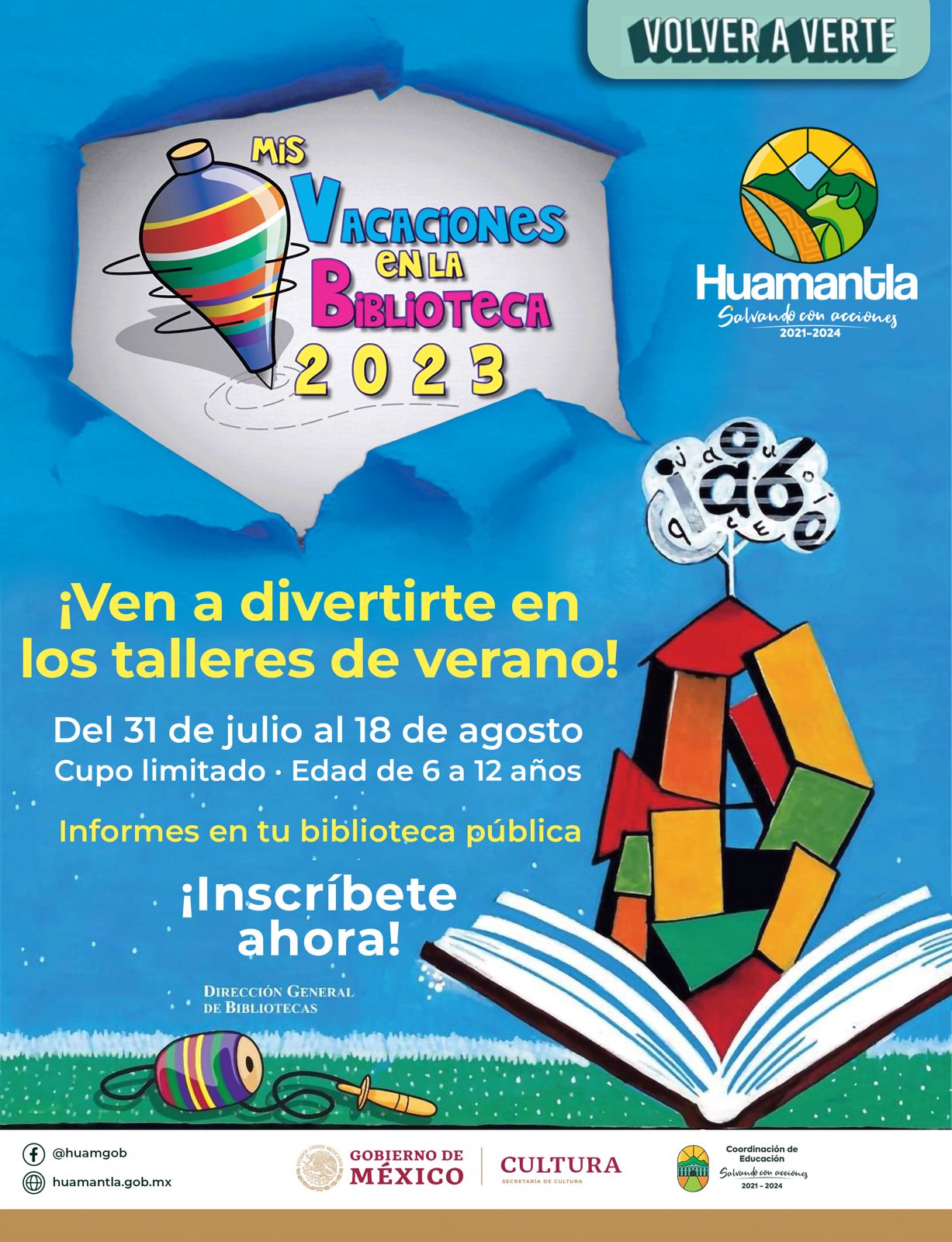 Huamantla, Tlax; 11 de julio de 2023 (PulsoRed) El H. Ayuntamiento de Huamantla que preside Salvador Santos Cedillo, a través de la Coordinación de Educación, invita a las niñas y niños del municipio a participar en el curso de verano “Volverte a Ver”, del 31 de julio al 18 de agosto en la biblioteca municipal.