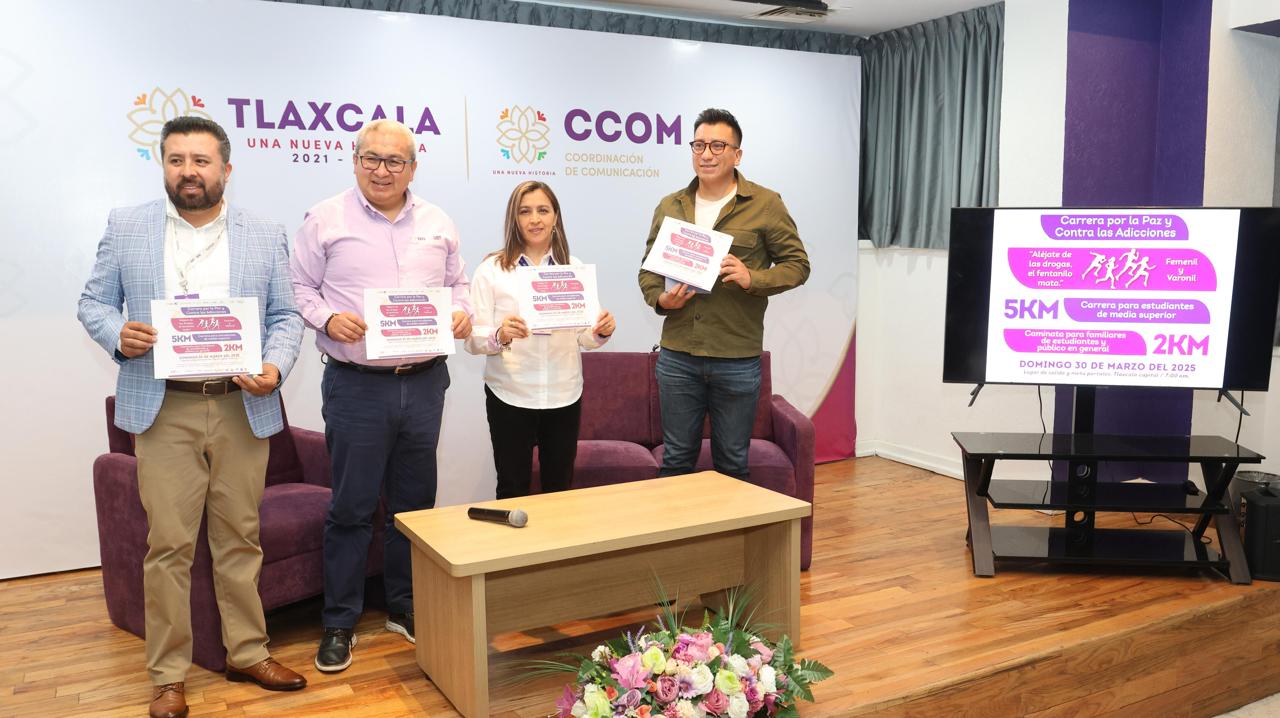 Tlaxcala, Tlax; 26 de marzo de 2025 (PulsoRed) En el marco de la campaña “El fentanilo te mata. Aléjate de las drogas, elige ser feliz”, el gobierno del estado anunció la realización de la “Carrera por la Paz y Contra las Adicciones”, que se llevará a cabo el próximo 30 de marzo a las 7 horas, con la participación de mil 900 estudiantes y público en general.