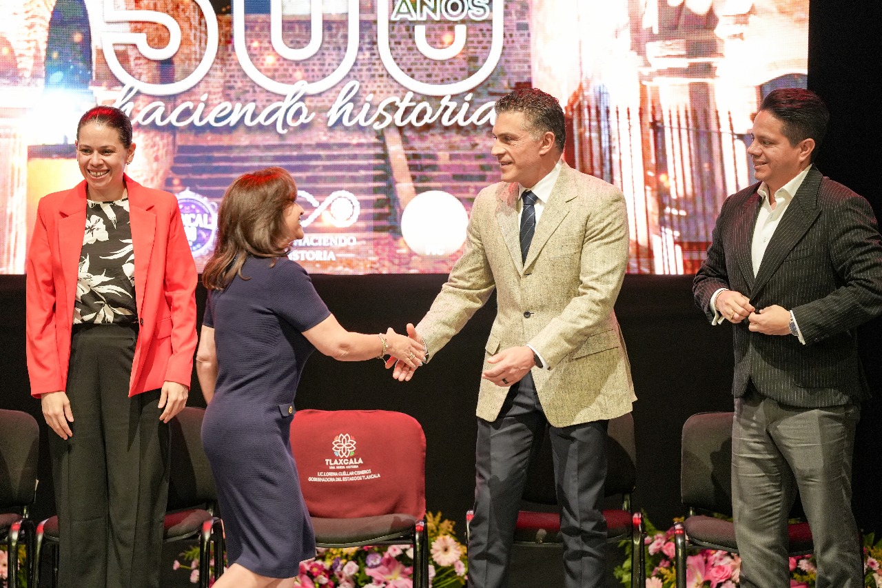 Durante la presentación oficial de los festejos, encabezada por la Gobernadora Lorena Cuéllar Cisneros en el Teatro Xicohténcatl, el alcalde destacó que este aniversario inspira a fortalecer el orgullo de ser tlaxcaltecas.