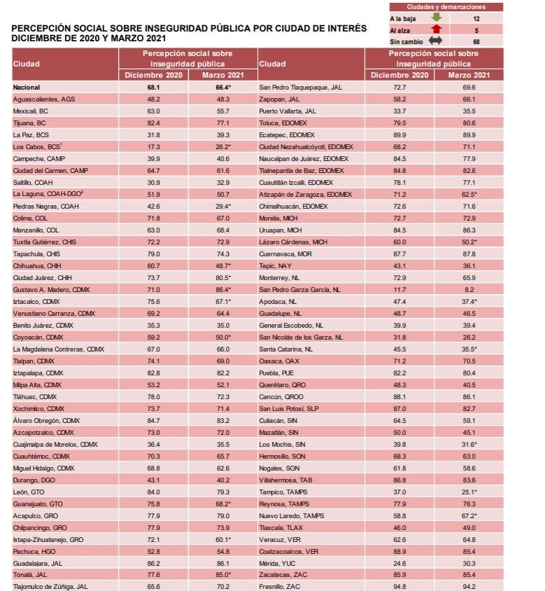 Tlaxcala, Tlax; 21 de abril de 2021 (Ariadna Castro) Con un incremento del 3 por ciento la percepción de inseguridad en Tlaxcala aumentó, pues paso de 46 por ciento al cierre de diciembre de 2020 a 49 por ciento en marzo pasado, de acuerdo a los resultados publicados de la Encuesta Nacional de Seguridad Pública Urbana que el Instituto Nacional de Estadística y Geografía (INEGI).