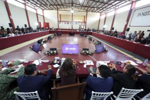 En la reunión con alcaldesas y alcaldes enfatizó que cada administración municipal tiene la obligación de contar con instituciones sólidas de seguridad ciudadana, con cuerpos policiales capacitados, certificados y registrados conforme a la Ley Nacional del Sistema de Seguridad Pública.
