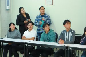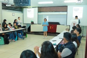 Como parte de la celebración por el Día del Gerontólogo, la egresada Denis Temiza Meneses compartió con los educandos su experiencia  en esta  disciplina del saber  y la oportunidad que tiene para cursar una maestría en la Universidad Pública de Andalucía, España, al obtener una beca en la Fundación Carolina y la Asociación Universitaria Iberoamericana de Posgrado, lo que le permitirá ahondar en el estudio de personas con depresión o problemas cognitivos mediante la intervención de animales.