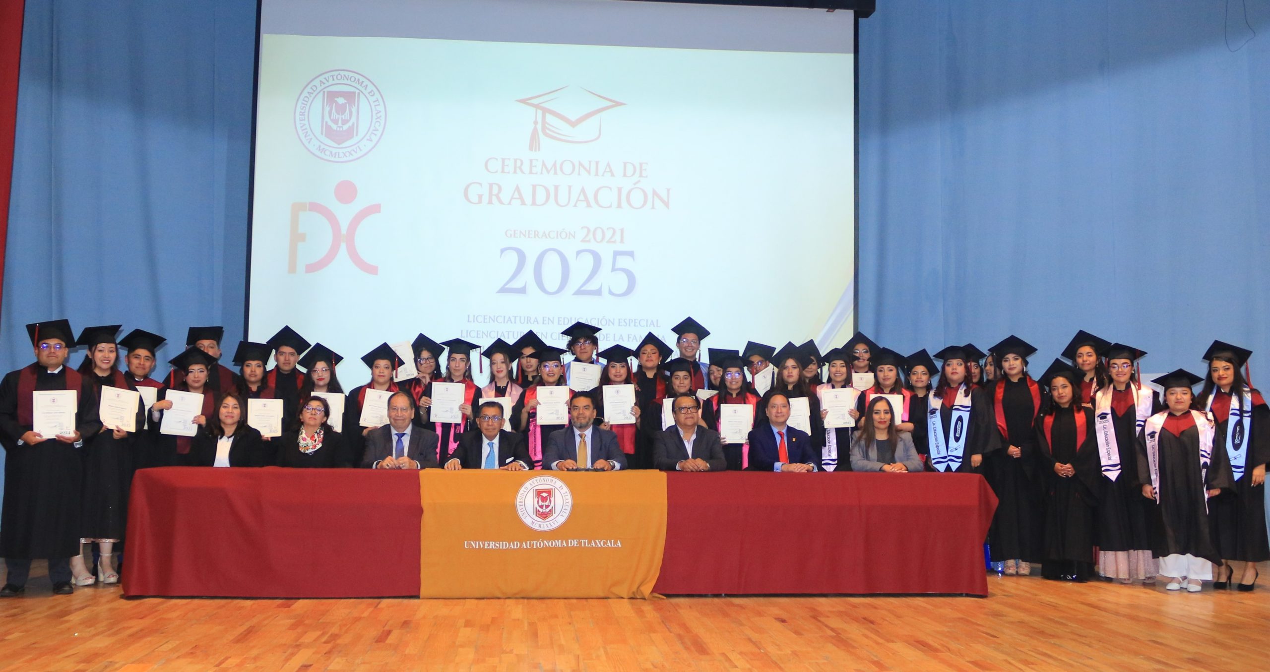 Tlaxcala, Tlax; 03 de julio de 2025 (PulsoRed) La Facultad de Ciencias para el Desarrollo Humano de la Universidad Autónoma de Tlaxcala (FCDH-UATx) se ha posicionado en el país como la “facultad de la inclusión” porque es uno de los caracteres del homo universitatis, afirmó el Doctor Serafín Ortiz Ortiz, Rector de esta máxima Casa de Estudios, al presidir la ceremonia de graduación de 35 egresados de las licenciaturas en Educación Especial, Ciencias de la Familia y Pedagogía Gerontológica, generación 2021-2025.