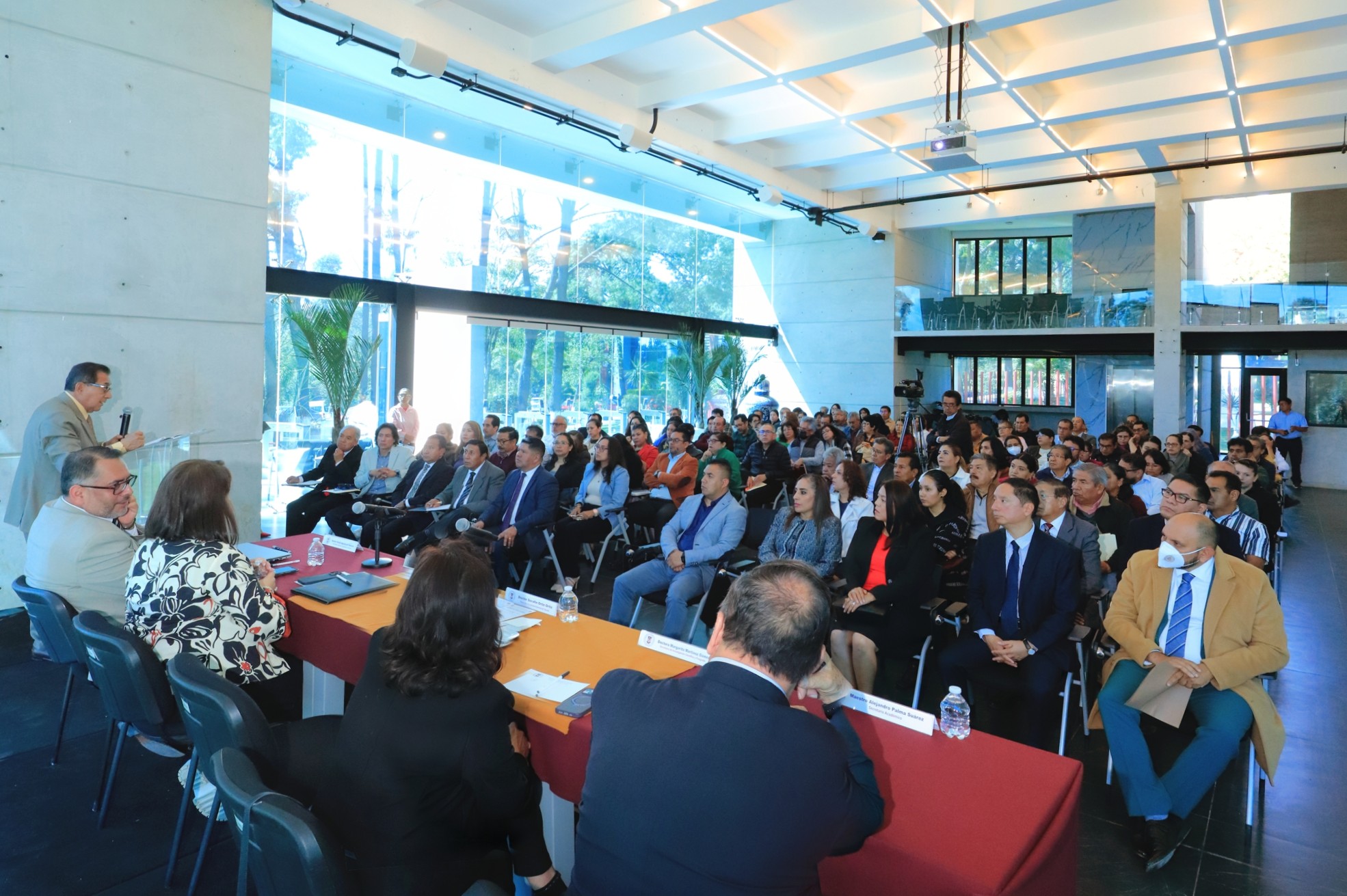 Ante especialistas de los centros de investigación y de cuerpos académicos, estructura directiva de la Institución y de las facultades, en el Auditorio Semifijo de Educación Inicial de la Torre de Rectoría, el Doctor Ortiz propició un diálogo con los académicos para conocer sus puntos de vista con respecto a los trabajos de futuro que buscan apuntalar la educación continua con diversos sectores de la sociedad.