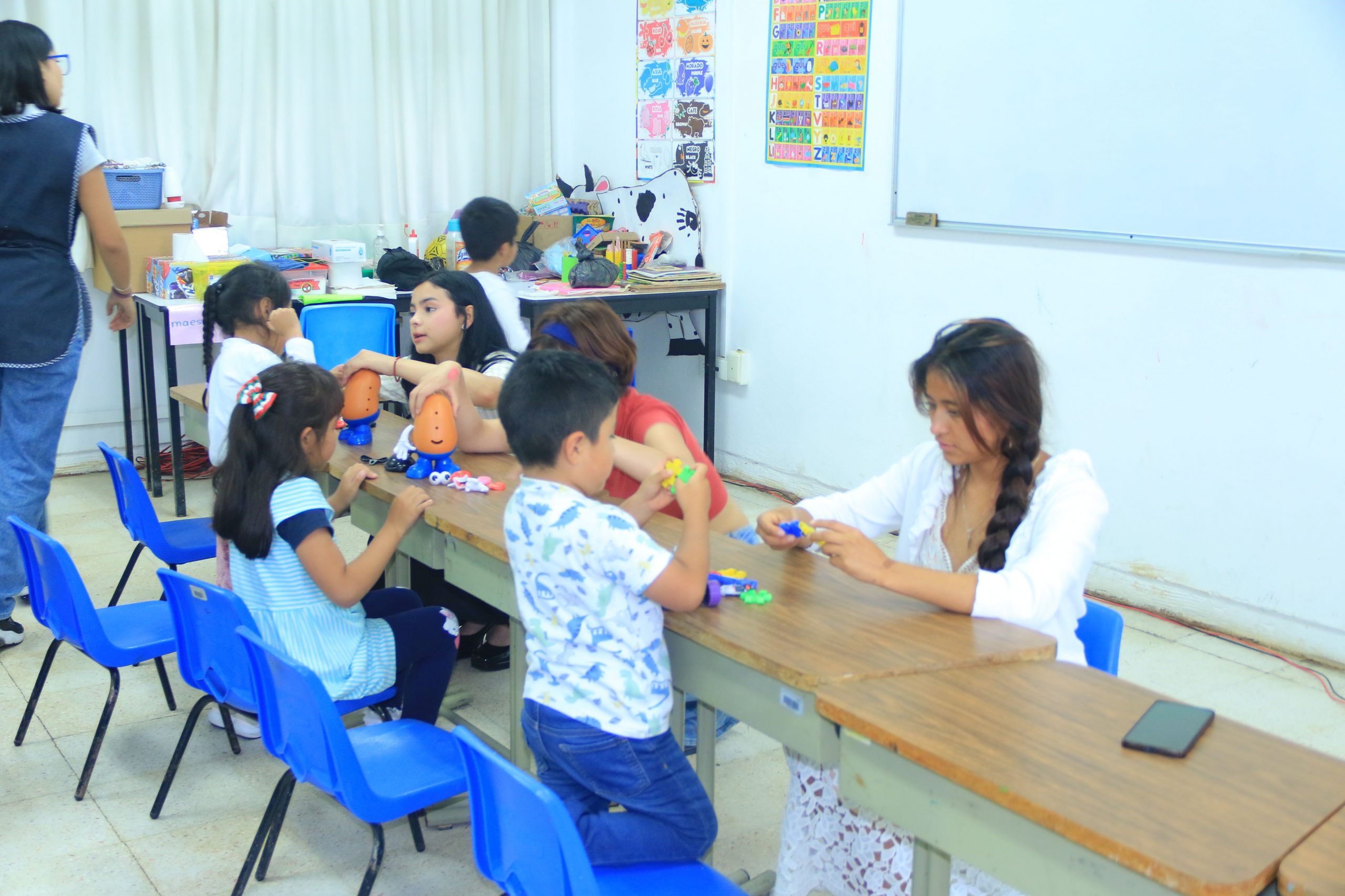 Bajo la coordinación de la Maestra Irais Baleón Cervantes, las estudiantes de la Licenciatura en Educación Especial organizan talleres para estimular la capacidad de pensar, razonar, aprender y percibir su entorno en infantes de entre dos y cinco años.