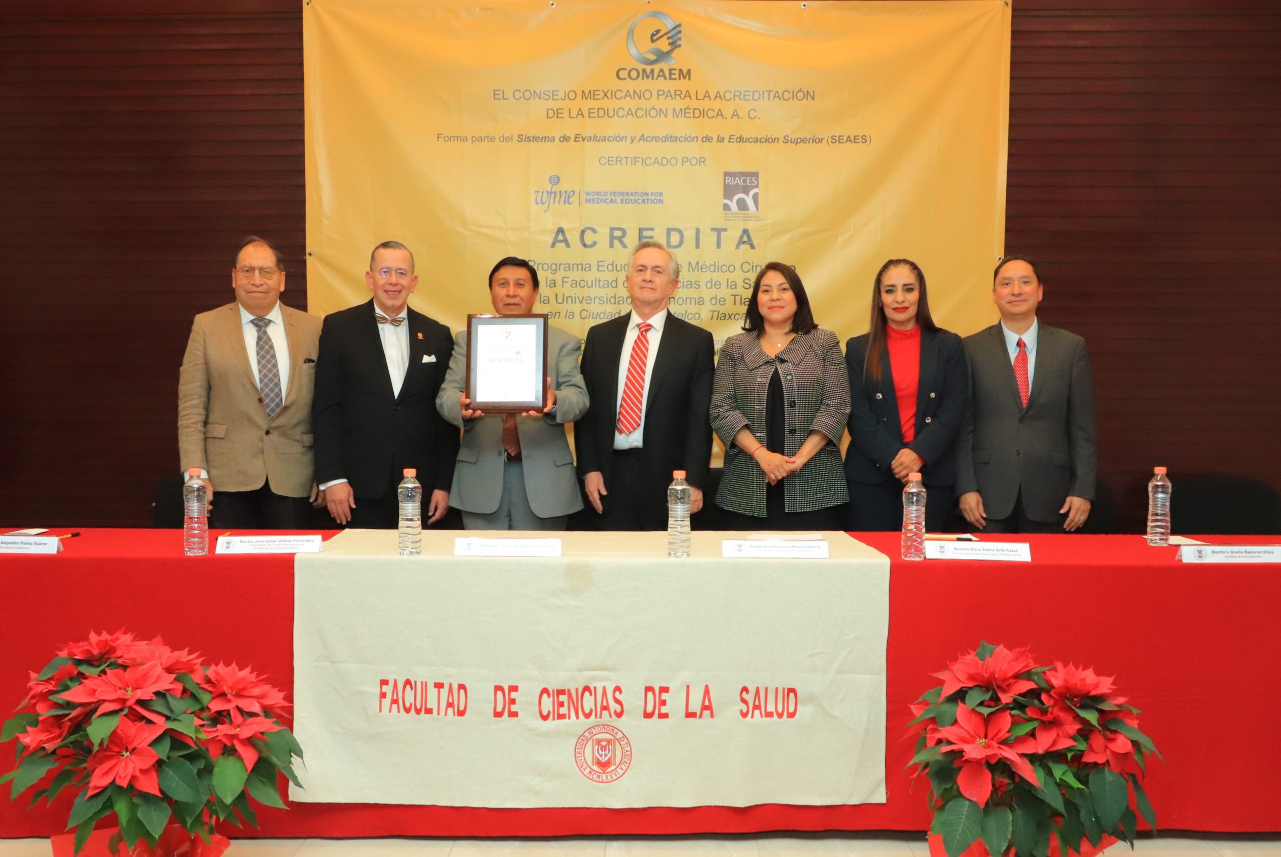 Tlaxcala, Tlax; 11 de diciembre de 2024 (PulsoRed) La acreditación de la calidad constituye un compromiso de la Universidad Autónoma de Tlaxcala (UATx) con la excelencia académica y el cumplimiento de nuestra misión por formar capital humano que responda a las necesidades de su entorno, aseguró el Maestro José Reyes Luna Ruíz, Coordinador de la División de Ciencias Biológicas, al recibir la Placa de la segunda Reacreditación de la Licenciatura en Médico Cirujano que otorgó el Consejo Mexicano para la Acreditación de la Educación Médica (COMAEM) para el periodo 2024-2029, organismo que forma parte del Sistema de Evaluación y Acreditación de la Educación Superior (SEAES).