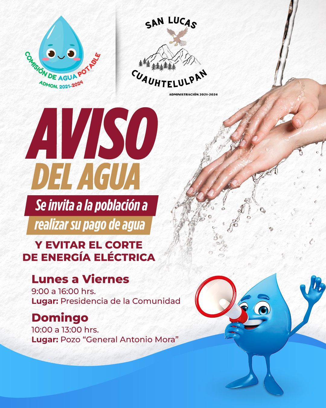 Tlaxcala, Tlax; 24 de agosto de 2023 (PulsoRed) La presidencia de comunidad en San Lucas Cuauhtelulpan, Tlaxcala, invita a los usuarios a participar en la campaña de regulación de pago de agua potable.