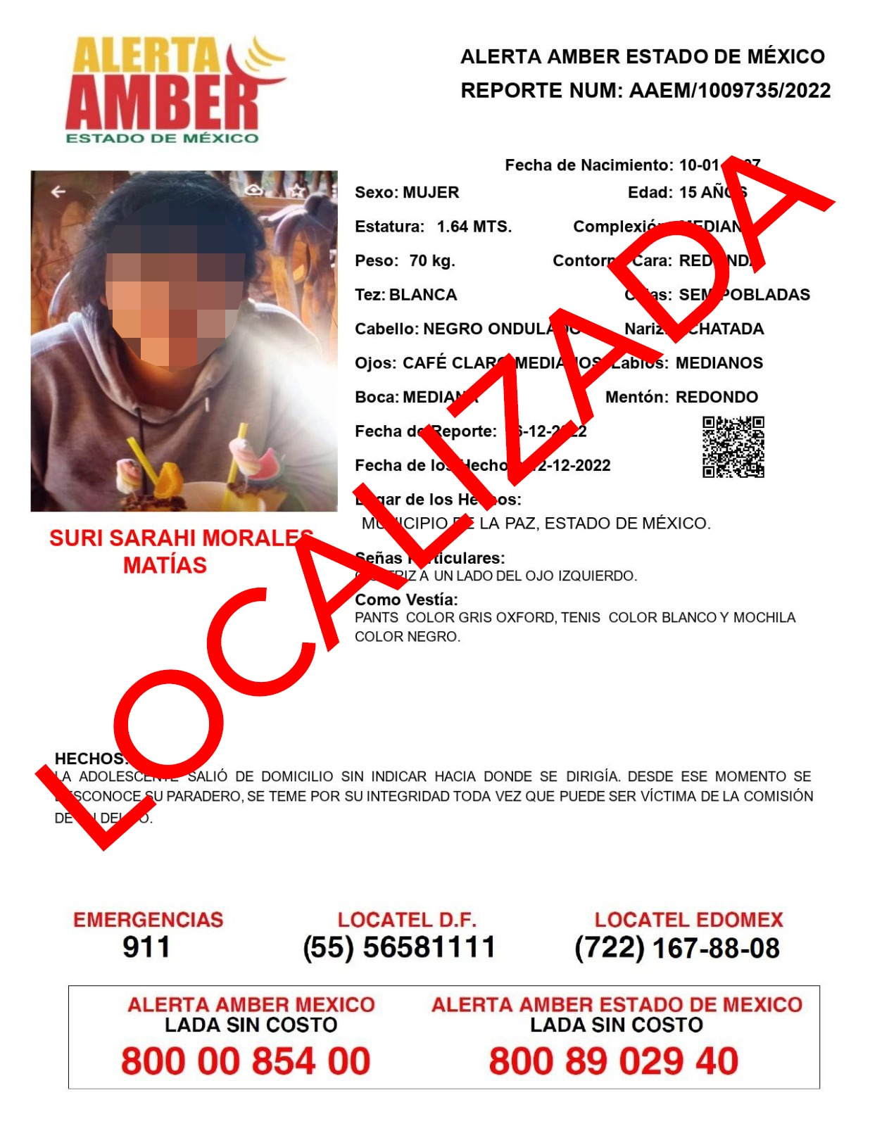 Tlaxcala, Tlax; 26 de abril de 2023 (PulsoRed) La Procuraduría General de Justicia del Estado (PGJE) a través de la Fiscalía Especializada en Personas Desaparecidas y No Localizadas (Fepdnl) en coordinación con la Fiscalía General de Justicia del Estado de México (Fgjem) localizaron a una menor de edad reportada como desaparecida.