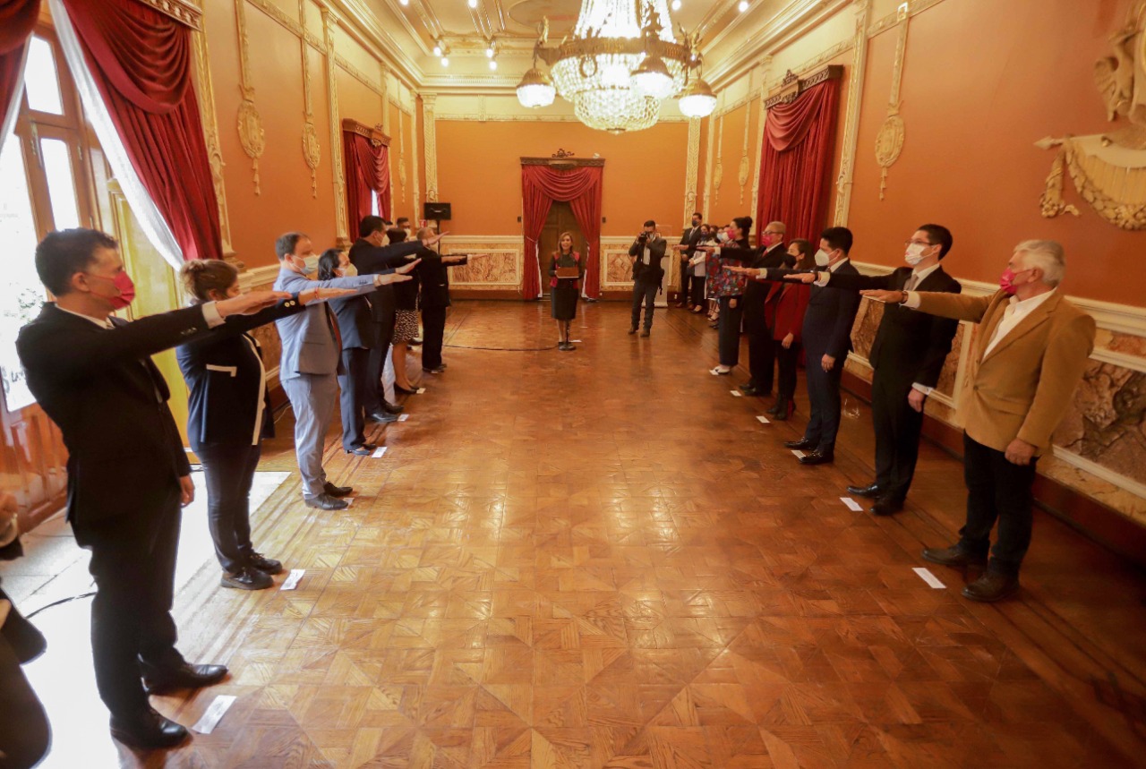 En el Salón Rojo de Palacio de Gobierno, la jefa del Ejecutivo nombró a Sergio González Hernández, como titular de la Secretaría de Gobierno; de igual forma a Eréndira Cova Brindis en la Contraloría del Gobierno Local, mientras que Ramiro Vivanco Chedraui estará al frente de la Oficialía Mayor de Gobierno.