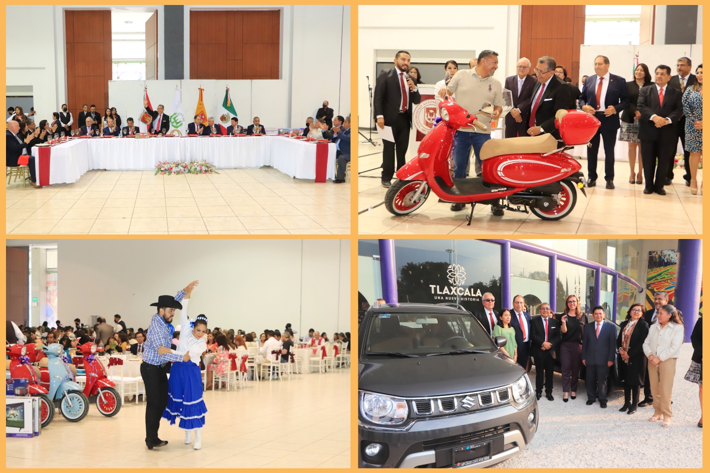 A este evento, efectuado en el Centro de Convenciones de la entidad, se dieron cita los exrectores de la UATx así como los integrantes de la estructura directiva, la Diputada Alejandra Ramírez Ortiz, quien donó presentes para los festejados y se llevó a cabo la tradicional rifa de dos automóviles, motonetas, electrodomésticos, pantallas, multifuncionales, laptops, tabletas y bicicletas.