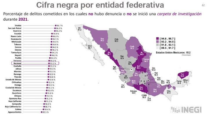 Al respecto, el Instituto Nacional de Estadística y Geografía (INEGI) reveló que durante el 2021, en Tlaxcala se cometieron 273 mil 195 delitos, de los cuáles, el ENVIPE detalló que solamente el 10.6 por ciento de estos fueron denunciados, y de este porcentaje, el 67.5 por ciento derivó en una carpeta de investigación por parte del Ministerio Público.