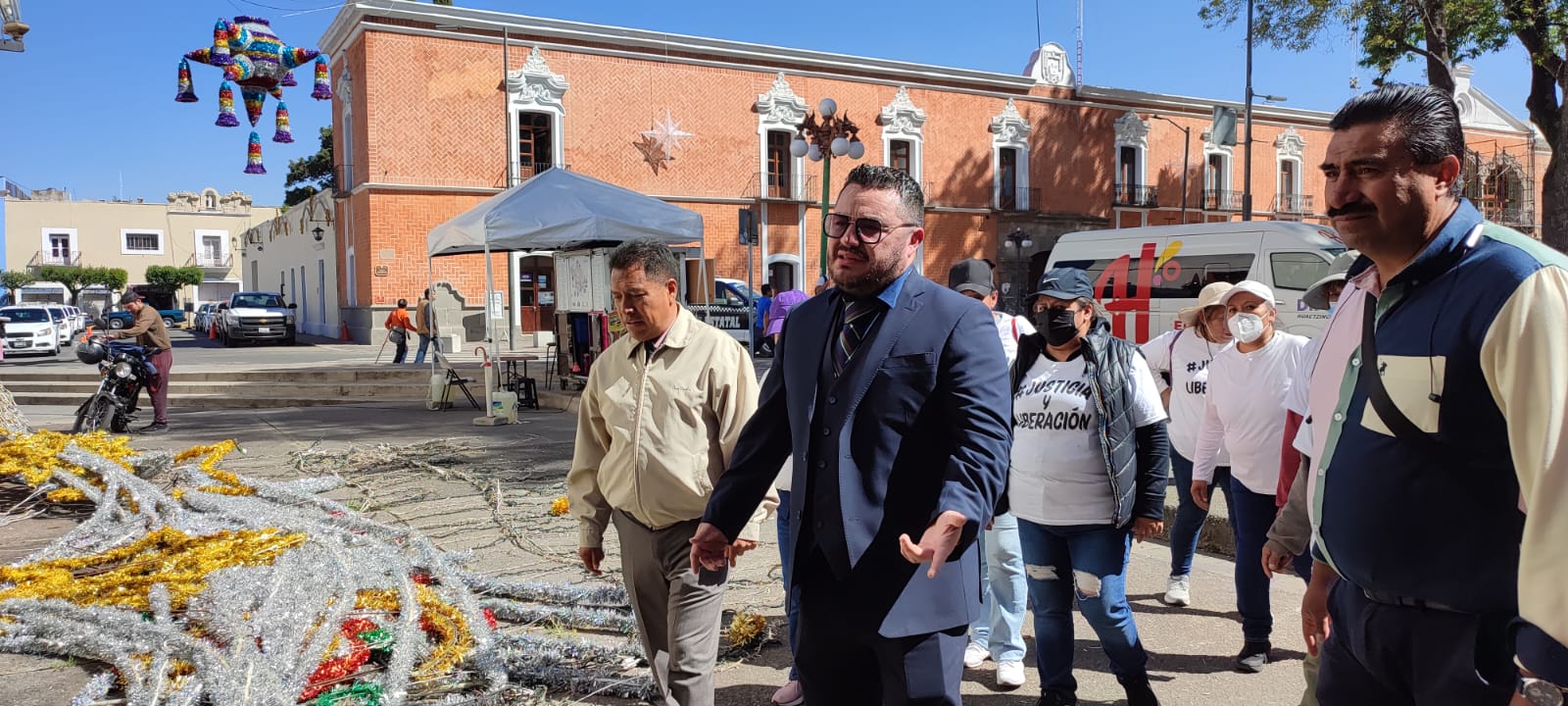 Tlaxcala, Tlax; 24 de noviembre de 2023 (Selene Sosa) Un grupo de pobladores de la comunidad de San Pedro Tlalcuapan, perteneciente al municipio de Chiautempan, marcharon este viernes para pedir la liberación de su presidente de comunidad y su tiaxca, privados de su libertad desde el 2022.