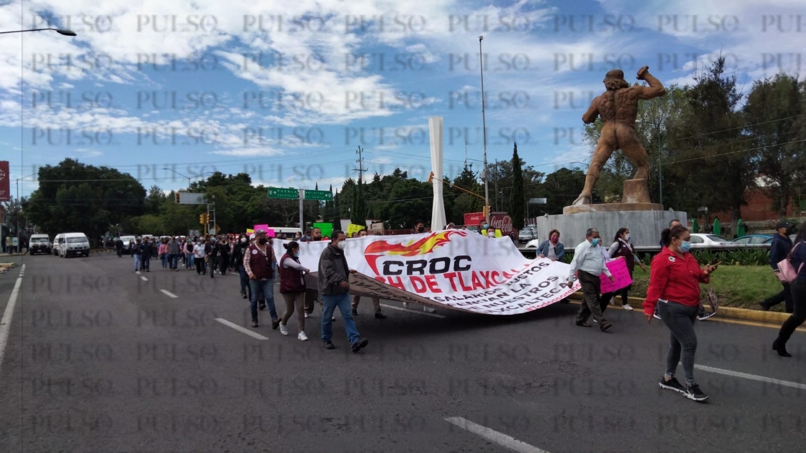 Fueron alrededor de 500 los trabajadores marcharon desde las instalaciones de Amatech hacia el palacio de gobierno, donde el dirigente estatal de la CROC, Justino Hernández Xolocotzi, quien señaló que no cederán hasta que se les conceda el 6.0 por ciento de salario.