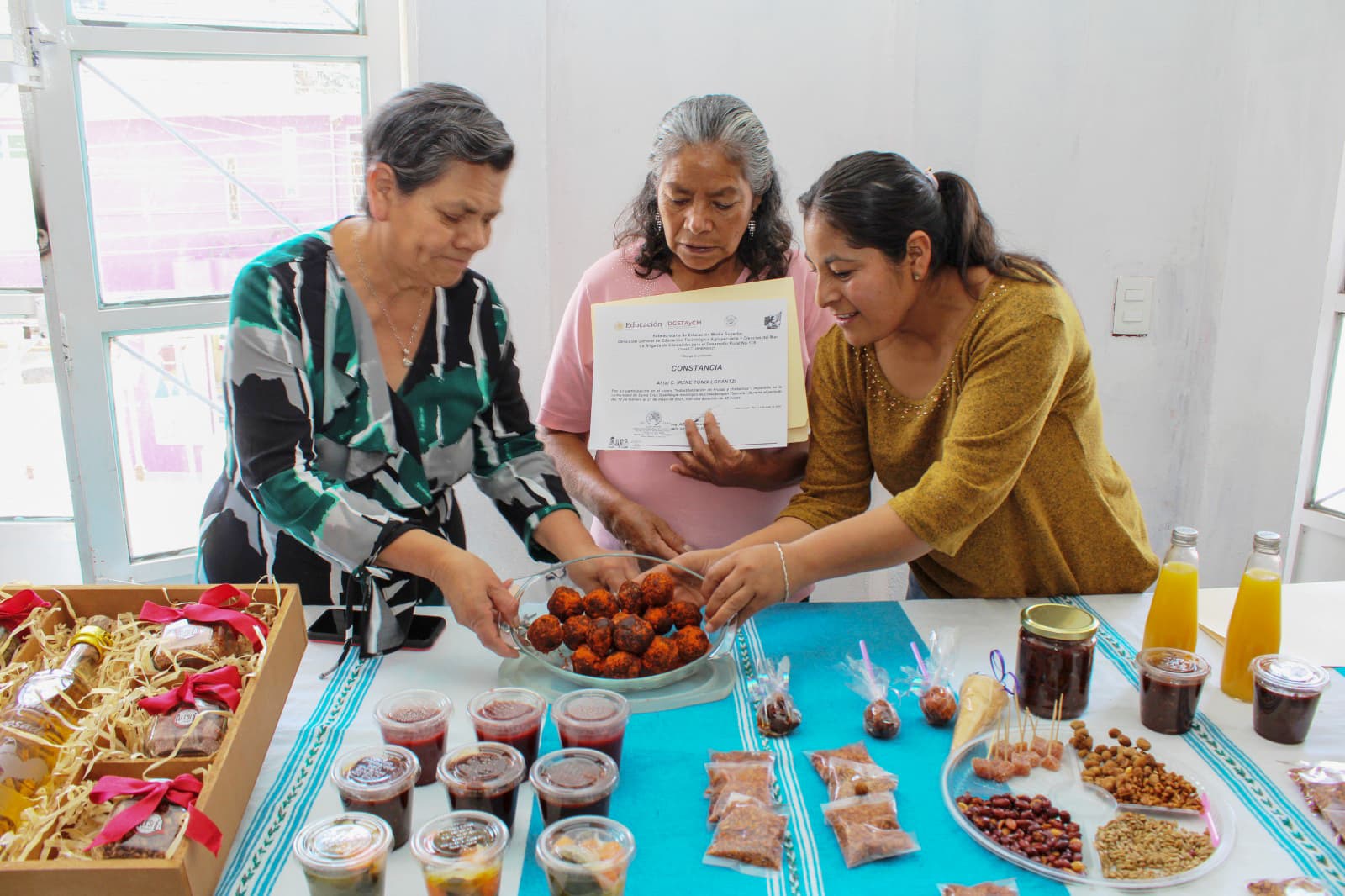 En estos espacios las participantes aprenden a elaborar productos artesanales utilizando materias primas disponibles en su entorno, lo que promueve el aprovechamiento sustentable de los recursos locales. Entre los productos que se enseñan a elaborar destacan mermeladas, frutas cristalizadas, semillas comestibles y miel, entre otros.