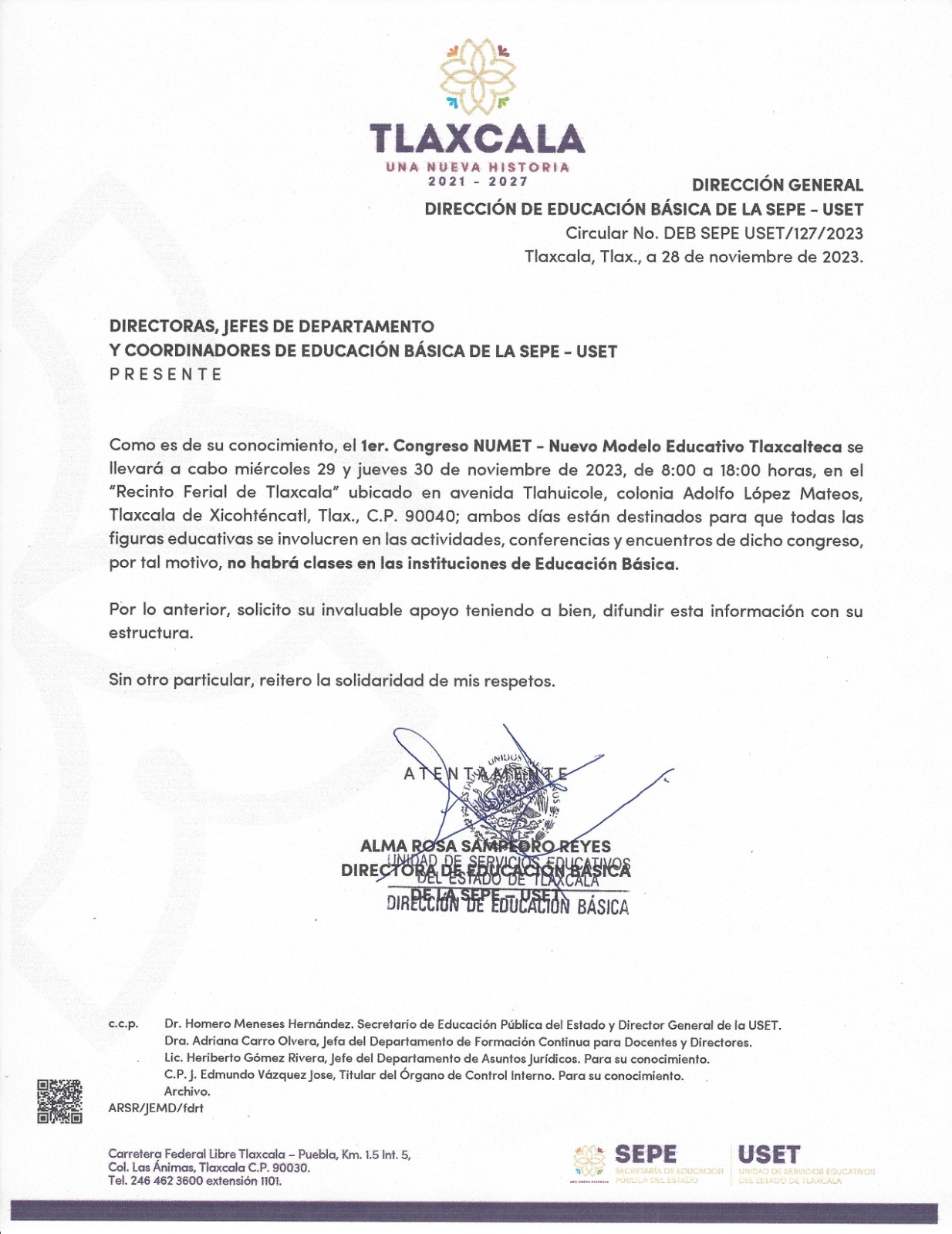 Es necesario precisar que, la SEPE-USET organizó el Primer Congreso del Nuevo Modelo Educativo Tlaxcalteca (NUMET) para este 29 y 30 de noviembre, días en que han sido canceladas las clases puesto que, al tener poca convocatoria, aparentemente el secretario obligó a académicos y administrativos a asistir.