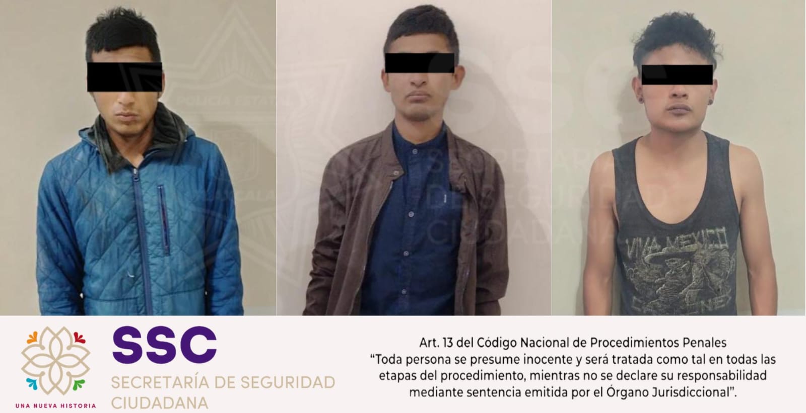 Ante este acto en flagrancia y conforme a derecho, se realizó la legal detención de Gael N., Fernando N. y Alejandro N., quienes, con los objetos recuperados y la droga, fueron puestos a disposición ante la autoridad competente para el proceso legal conforme a derecho.Con estas acciones, la SSC refrenda su compromiso de trabajo y cero tolerancia a los actos delictivos; asimismo, garantiza los trabajos realizados mediante el operativo Mando Coordinado Zacatelco.