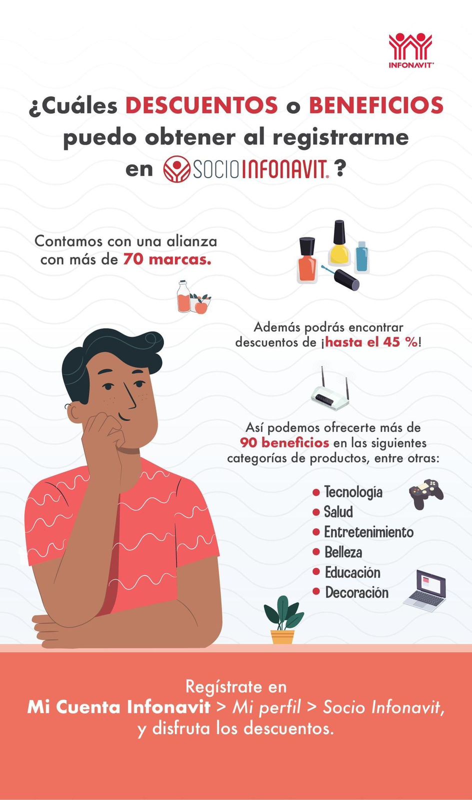 Tlaxcala, Tlax; 30 de noviembre de 2023 (PulsoRed) Las vacaciones, los regalos y las fiestas decembrinas están a la vuelta de la esquina y la mejor manera de sobrevivir a todos esos gastos, cuidando tu bolsillo, es registrándote de forma gratuita en Socio Infonavit, la plataforma en la que, sin necesidad de tener un crédito, podrás obtener descuentos y promociones exclusivas en productos y servicios de más de 90 marcas.