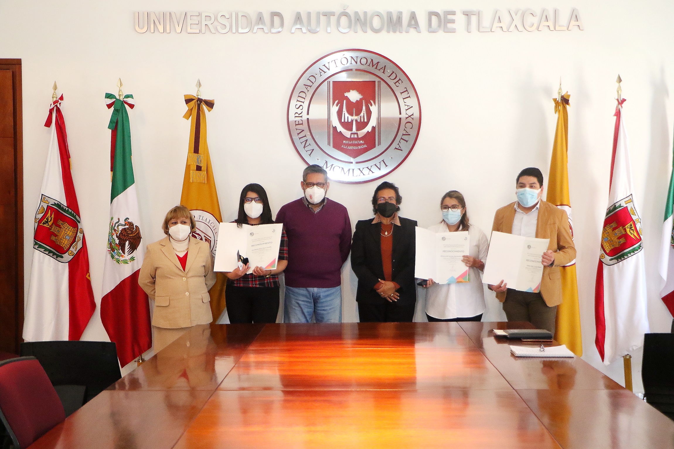 Tlaxcala, Tlax; 10 de febrero de 2022 (PulsoRed) Con el objetivo de reconocer el talento y dedicación para adquirir conocimientos de vanguardia durante su formación, el Dr. Luis González Placencia, Rector de la Universidad Autónoma de Tlaxcala (UATx), entregó el premio que el Centro Nacional de Evaluación para la Educación Superior (CENEVAL) otorga al desempeño de excelencia en el Examen General para el Egreso de Licenciatura (EGEL), a tres estudiantes del programa de Química Clínica, que se imparte en la Facultad de Ciencias de la Salud.