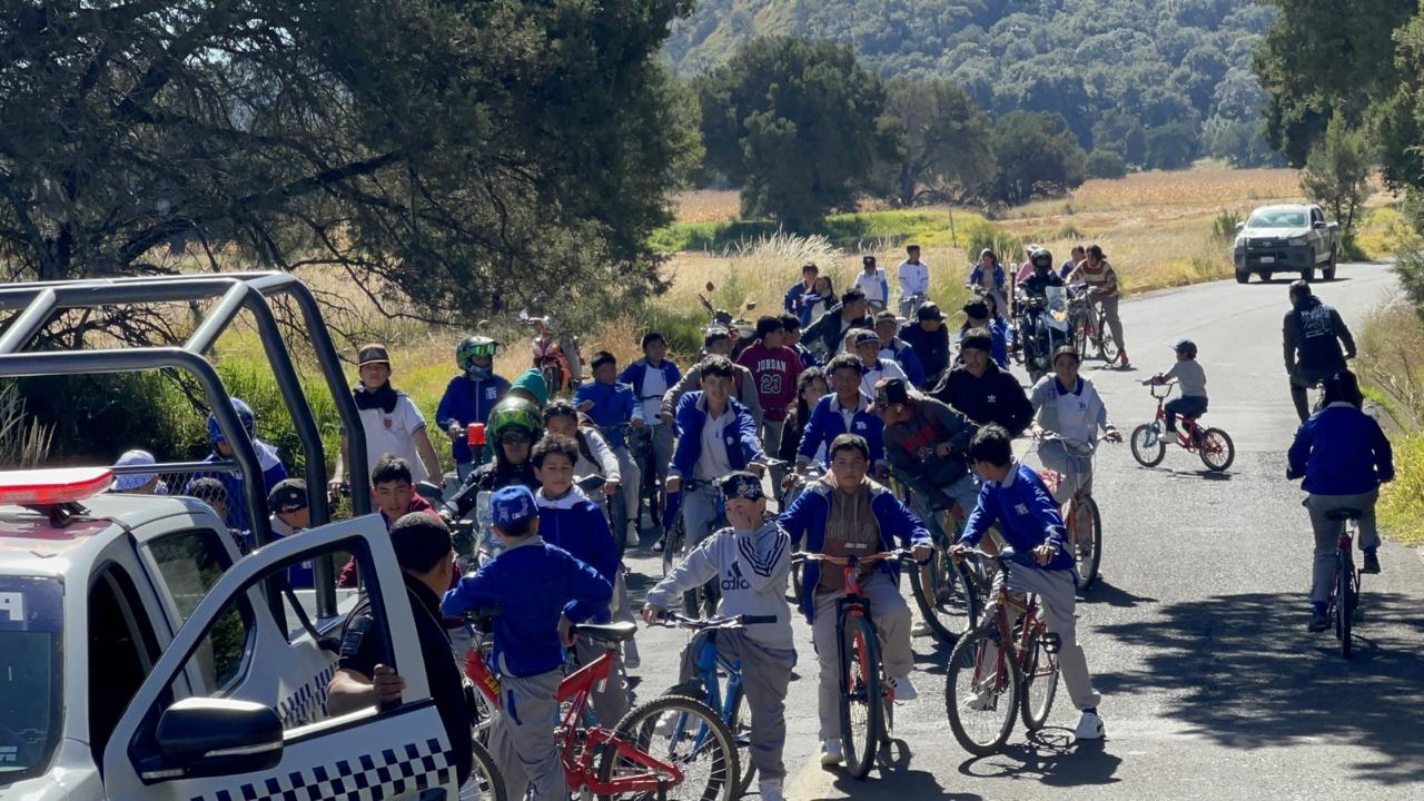 Posteriormente, autoridades escolares y del IDET dieron el banderazo de salida a la rodada ciclista.