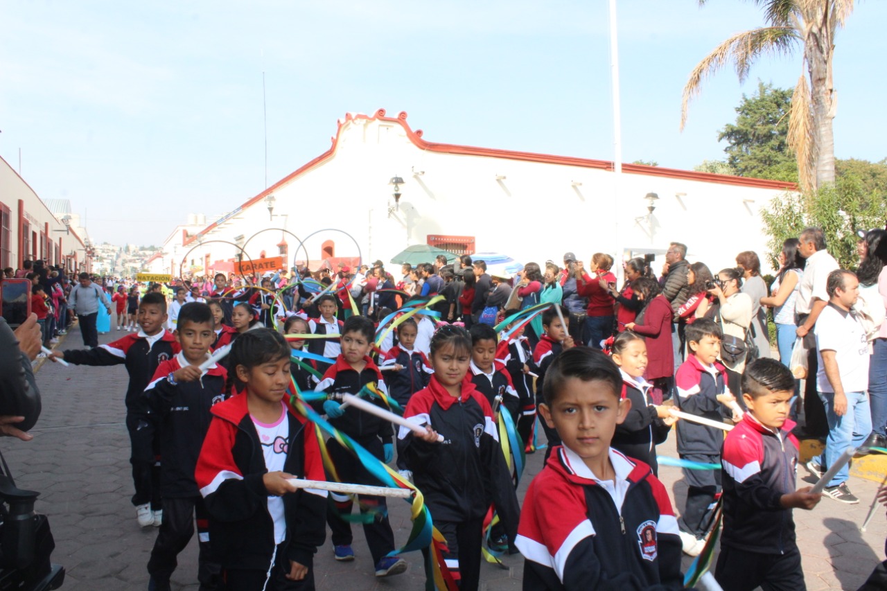Tlaxcala, Tlax; 20 de noviembre de 2019 (Pulso) Ante la presencia del Presidente Municipal, Mtro, Rafael Zambrano Cervantes, el Secretario del Ayuntamiento, la Síndico, Regidores y presidentes de Comunidad la parada cívico recorrió las principales calles y avenidas de la cabecera municipal, con gallardía las bastoneras lucieron sus dinámicas de colores, además de los mosaicos honraron a los heroes de la Revolución Mexicana.