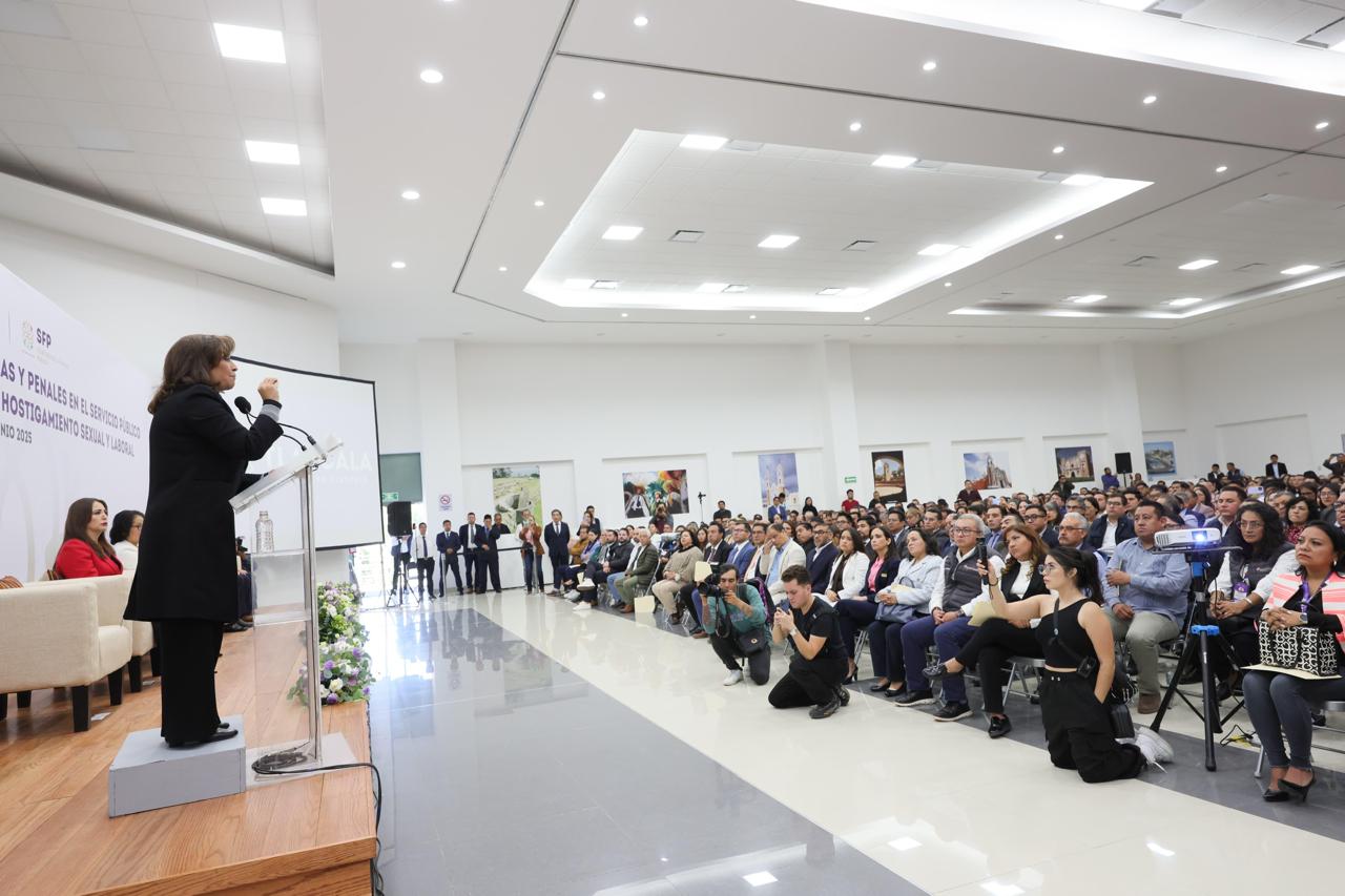 La titular del Ejecutivo asistió a la conferencia “Responsabilidades Disciplinarias y Penales en el Servicio Público en Razón de Género, Acoso y Hostigamiento Sexual y Laboral”, impartida por Lizbeth Xóchitl Padilla Sanabria, analista Jurídica del Sistema Nacional Anticorrupción, organizada por la Secretaría de la Función Pública del estado (SFP), con la finalidad de promover una cultura institucional de respeto, legalidad, equidad y cero tolerancia a la violencia.