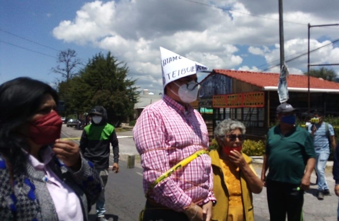 Tlaxcala, Tlax; 12 de agosto de 2021 (Ariadna Castro) Este jueves, pobladores del municipio de Panotla cerraron parcialmente la carretera federal Tlaxcala-Texmelucan y amarraron al secretario del Ayuntamiento Christian Israel Vélez Vázquez, en protesta por la falta del servicio de agua, pues acusan que esto se debe a la falta de pago ante la Comisión Federal de Electricidad.