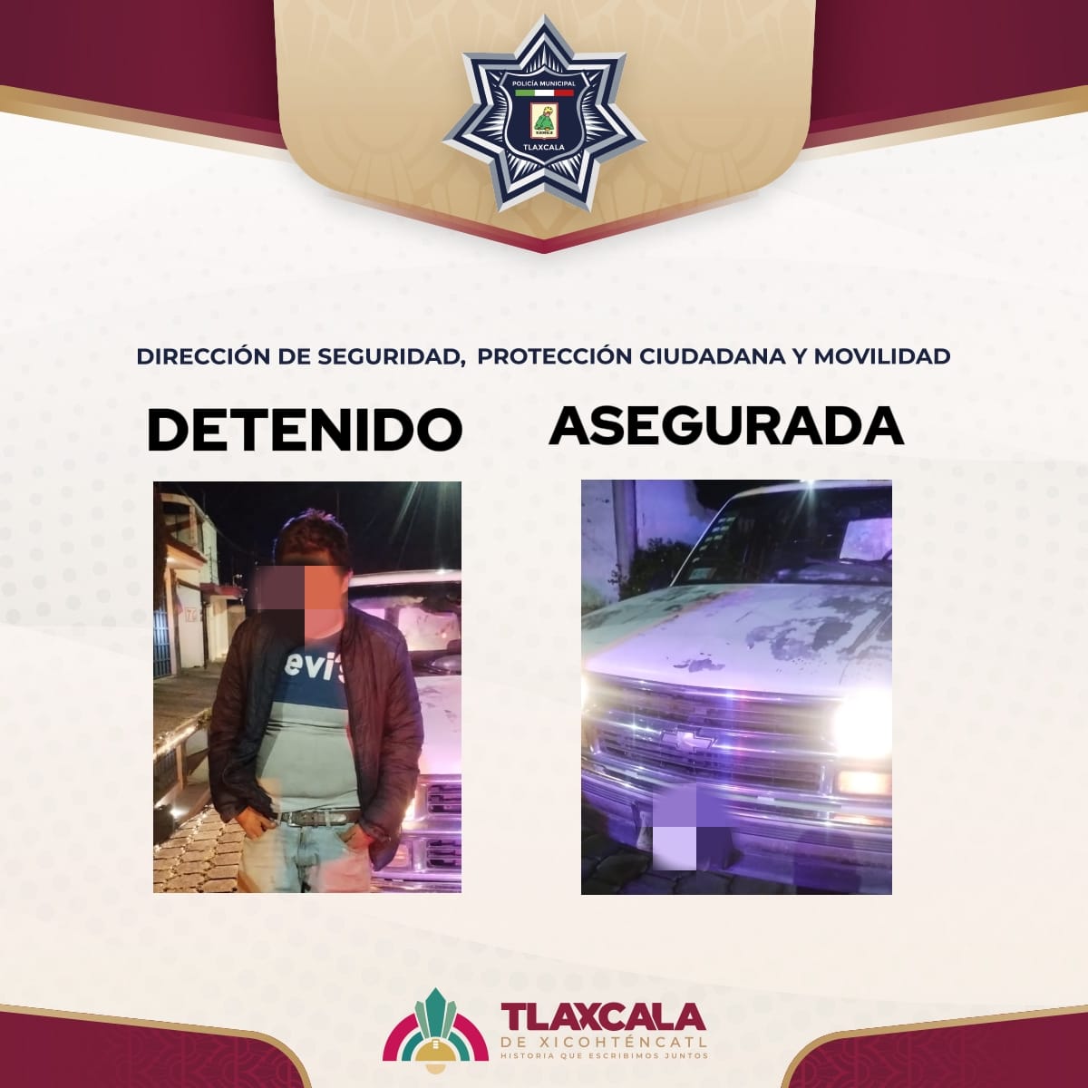 Tlaxcala, Tlax; 06 de septiembre de 2025 (PulsoRed) La policía municipal de Tlaxcala aseguró en la comunidad de Santa María Ixtulco a un hombre con una camioneta vinculada a diferentes hechos delictivos, luego de ser detectada a través de los arcos de seguridad.