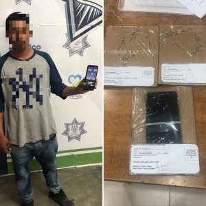 Apizaco, Tlax; 25 de octubre de 2022 (PulsoRed) Durante recorrido de vigilancia la Policía de Apizaco frustró el robo con violencia hacia una femenina, por parte de un masculino que la despojó de un teléfono celular y joyería, para luego emprender la huida al notar la presencia de los uniformados.