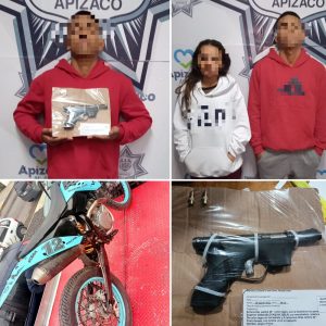 Apizaco, Tlax; 16 de agosto de 2022 (PulsoRed) Gracias a los recorridos de vigilancia, la policía de Apizaco detuvo a un masculino y a una femenina, luego de que intentaran asaltar a punta de pistola a un joven hombre en vía pública.