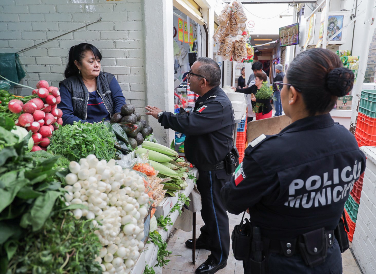 Durante el recorrido, se compartieron recomendaciones básicas de seguridad y prevención del delito, además de escuchar las inquietudes de las y los locatarios. Como parte de estas acciones, se establecieron canales de comunicación directa entre comerciantes y autoridades para atender cualquier situación de manera oportuna.