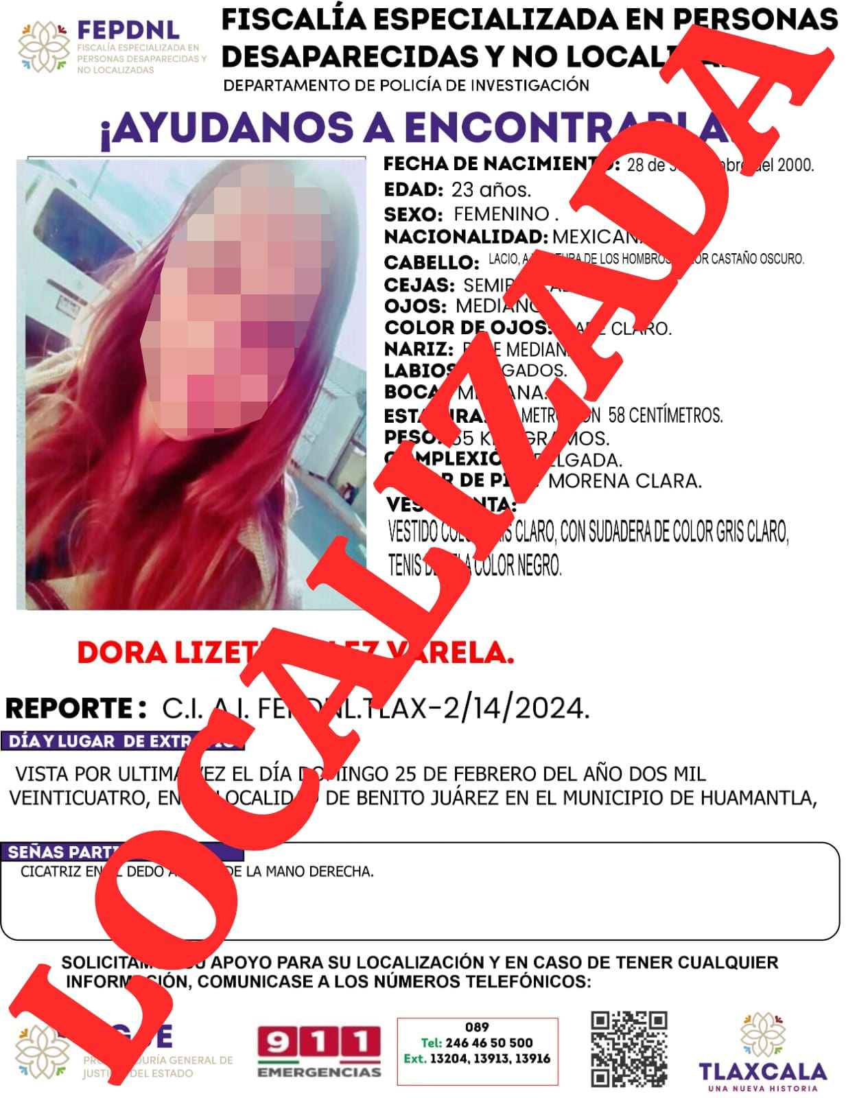 Derivado de la denuncia presentada por familiares de la mujer, agentes de Investigación realizaron las labores de búsqueda correspondientes; sin embargo, la fémina al percatarse que había una ficha de búsqueda por su desaparición se presentó en las instalaciones de la Fepdnl.