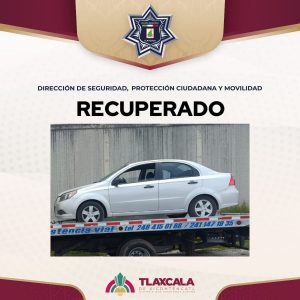 Tlaxcala, Tlax; 09 de agosto de 2025 (PulsoRed) Durante un recorrido de vigilancia en la colonia La Loma Xicohténcatl, elementos de la Dirección de Seguridad, Protección Ciudadana y Movilidad del Municipio de Tlaxcala aseguraron un vehículo con alteraciones visibles en el número de identificación vehicular (NIV) y reporte de robo vigente.