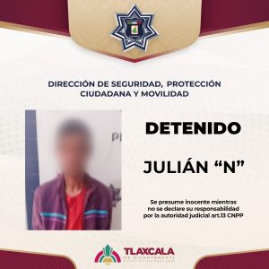 El detenido fue identificado como Adahir “N”, de 31 años de edad, quien fue trasladado a las instalaciones de la Dirección de Seguridad, Protección Ciudadana y Movilidad del Municipio de Tlaxcala, donde quedó a disposición del Juzgado Municipal.