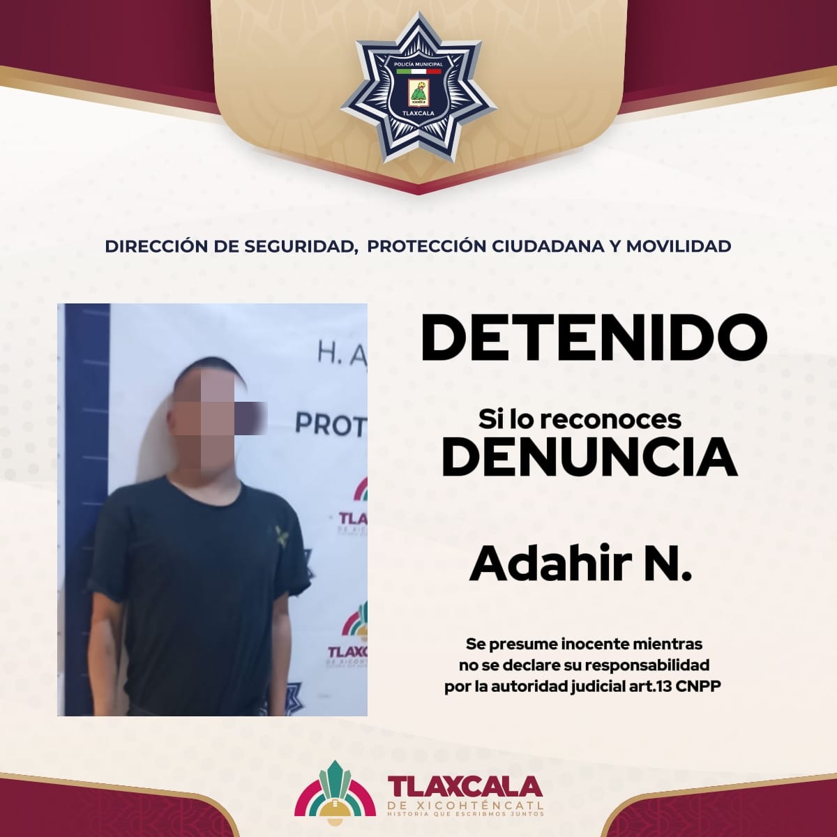El detenido, identificado como Adahir “N”, de 23 años de edad, fue trasladado a las instalaciones de la Dirección de Seguridad Ciudadana, donde inició el protocolo para ponerlo a disposición de la autoridad correspondiente, la que definirá su situación legal.