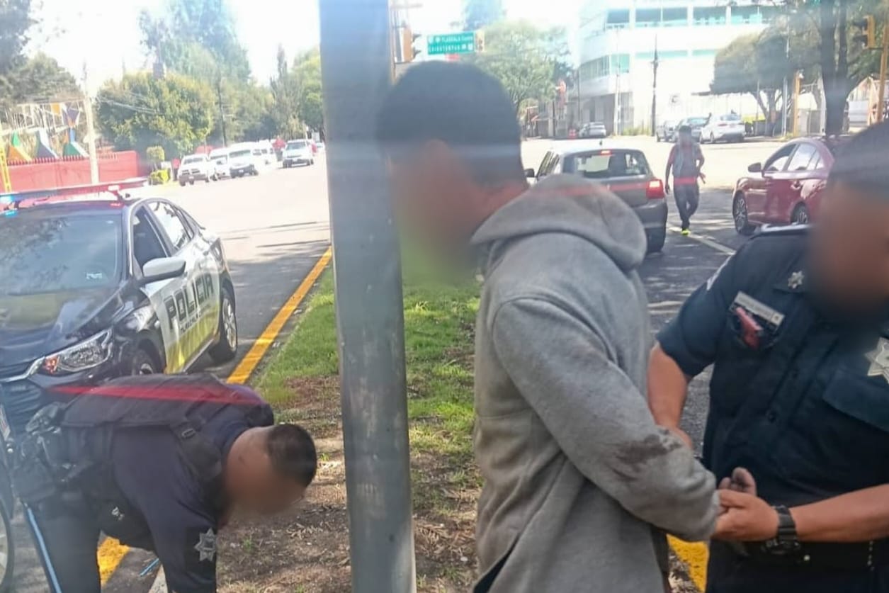 De inmediato, elementos policiales ubicaron a un hombre con objetos inusuales y actitud evasiva. Al realizar la entrevista preventiva e identificarlo como parte de un procedimiento de rutina, el individuo respondió de forma agresiva y se negó a proporcionar sus datos.