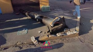 El percance involucró un tráiler con placas de circulación 40-AW-5Z del transporte federal particular de México, el cual, al realizar maniobras, derribó un semáforo.