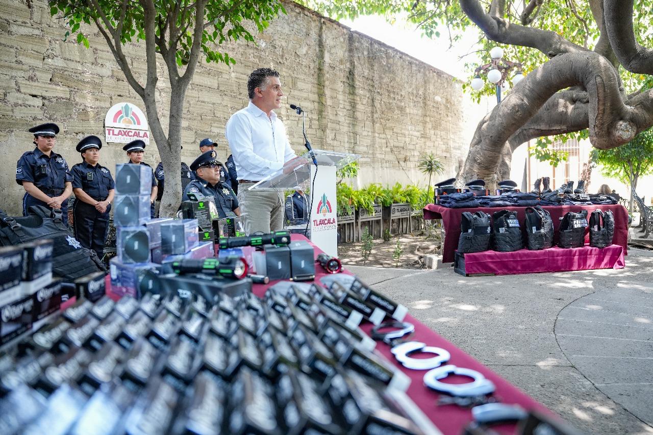 Tlaxcala, Tlax; 21 de julio de 2025 (PulsoRed) En una acción más para fortalecer la seguridad en la capital, el presidente municipal de Tlaxcala, Alfonso Sánchez García, encabezó este lunes la entrega de equipo táctico a la totalidad del estado de fuerza de la policía municipal, incluida la entrega de uniformes nuevos, chalecos balísticos, candados de seguridad y linternas tácticas.