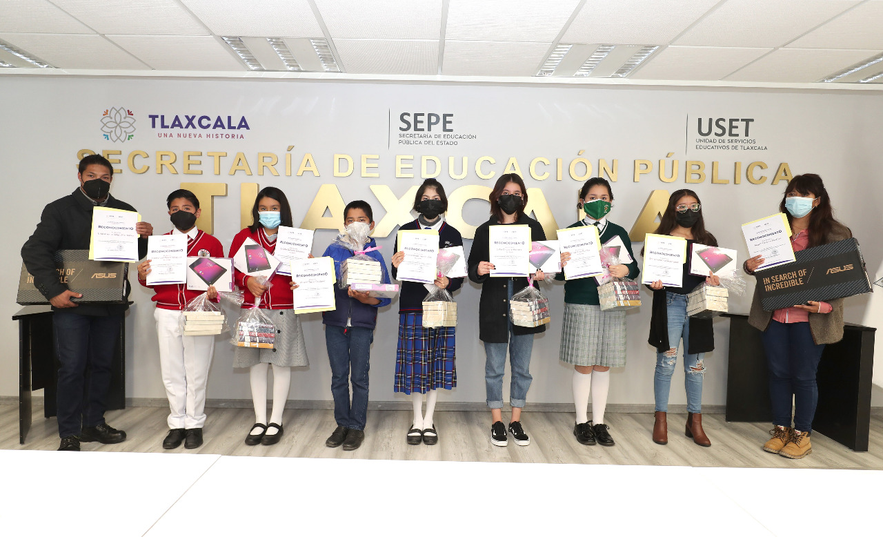 Tlaxcala, Tlax; 11 de noviembre de 2021 (Pulso Red) Con el propósito de reafirmar el conocimiento sobre los símbolos patrios, sus raíces históricas, fortalecer la identidad y refrendar el amor a la patria, autoridades de la Secretaría de Educación Pública del Estado (SEPE) y de la Unidad de Servicios Educativos de Tlaxcala (USET) premiaron a alumnas, alumnos, maestra y maestro que resultaron ganadores del “Concurso de Expresión Literaria sobre los Símbolos Patrios 2021”.