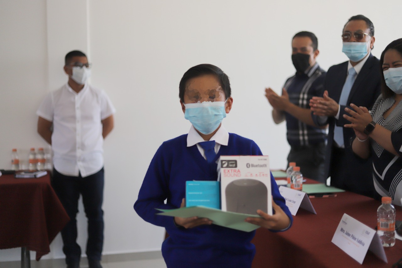 Posteriormente, el titular de la CEAT, en conjunto con el jurado calificador integrado por la diputada local, Maribel León Cruz, su compañero de Legislatura, Bladimir Zainos Flores y Andrés Temoltzin Teomitzi, representante de la diputada Alejandra Ramírez Ortiz, entregaron los reconocimientos y premios a los nueve ganadores, consistentes en tabletas electrónicas, bocinas inteligentes, audífonos y juguetes.