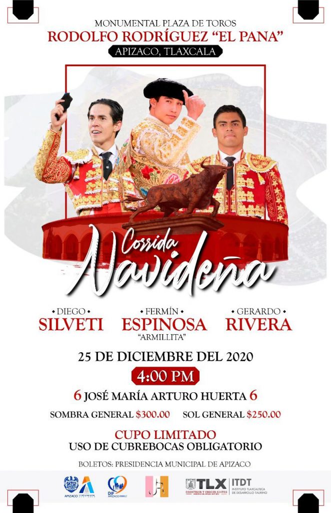 Tlaxcala, Tlax; 16 de diciembre de 2020 (Pulso) El gobierno de Apizaco, encabezado por Julio César Hernández Mejía, dio a conocer las corridas de toros que se prepararon para el 25 de diciembre y el 1 de enero en la Monumental, Rodolfo Rodríguez “El Pana”.